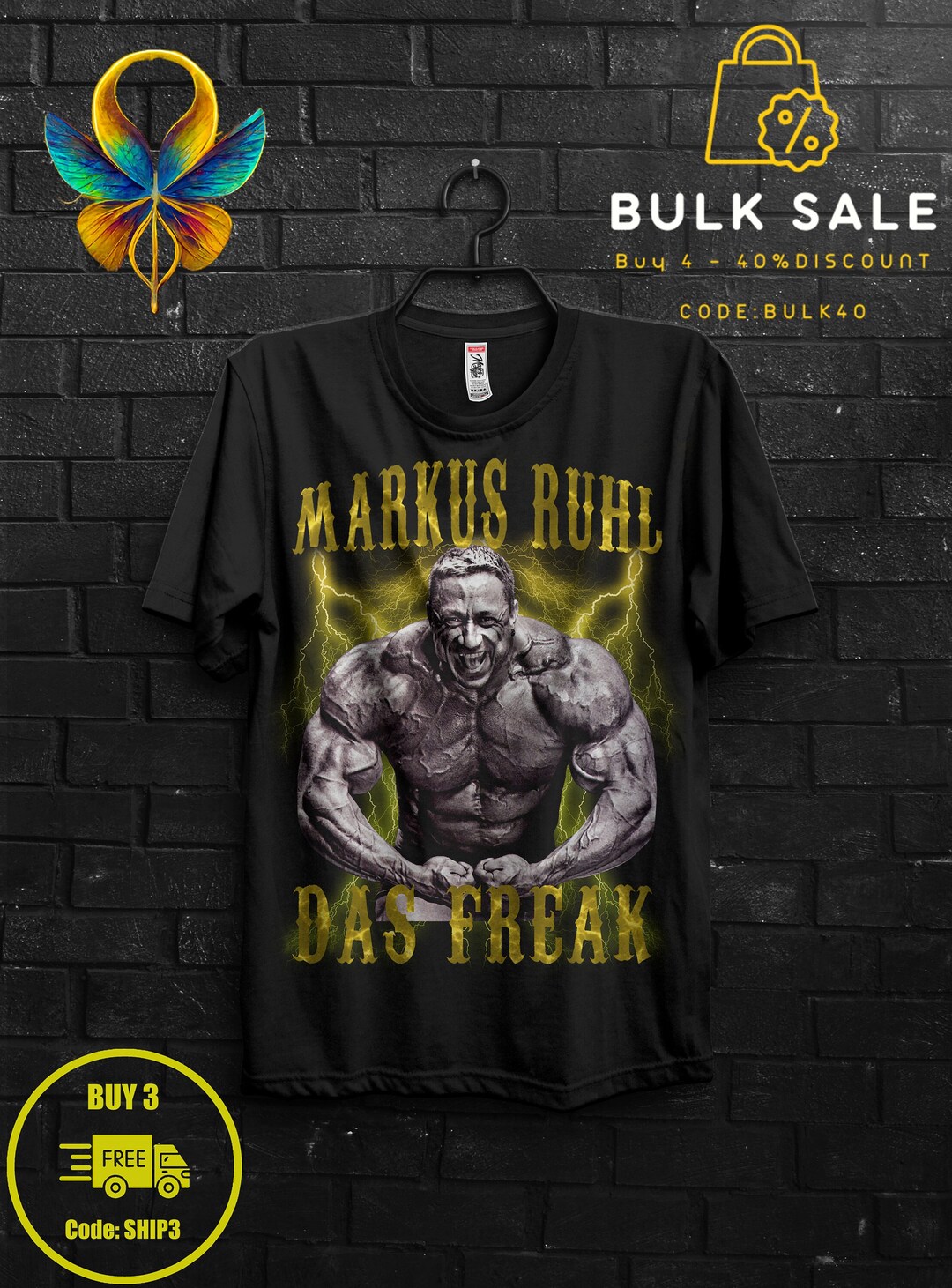 Pumpen mit Style! Dieses Markus Rühl T-Shirt ist genau das Richtige fürs Training oder die Freizeit. Aus 100% Baumwolle - super weich und angenehm auf der Haut. Mit coolem Graphic-Print für den echten Gym-Look. Loose Fit und Athletic Passform - sitzt perfekt bei trainierter Figur. Einfach in der Maschine bei 30°C waschen, nicht im Trockner. Perfektes Geschenk für Fitness-Fans und Bodybuilding-Begeisterte. Ob beim Training, im Alltag oder auf dem Weg zum Gym - mit diesem Shirt zeigst du, wo's langgeht. Qualität, die ankommt!