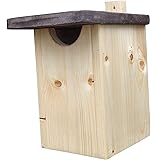 Ein gemütliches Zuhause für Rotkehlchen! Dieser Nistkasten aus massivem Fichtenholz (1,6-1,8cm stark) ist speziell für die niedlichen Vögel designed. Als Halbhöhle kombiniert - genau wie Rotkehlchen es mögen. Maße: 25x20x15cm. Das Dach ist wetterfest lasiert, der Korpus geölt. Der Clou: Der Boden lässt sich ohne Werkzeug herausnehmen - super praktisch zur Reinigung im Herbst. Auch für Gartenrotschwanz und Grauschnäpper geeignet. Einfach an einem ruhigen, halbschattigen Platz aufhängen und schon bald ziehen vielleicht neue Mitbewohner ein!