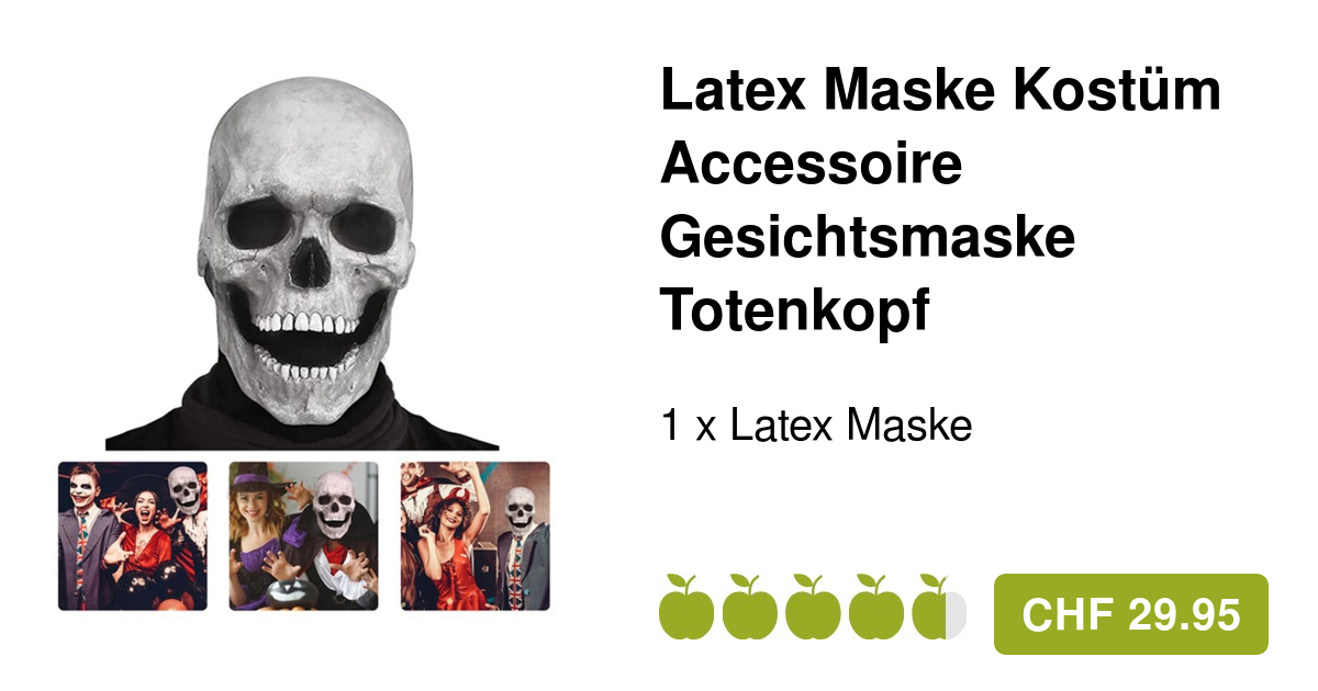 Boah, diese Zombie-Maske ist der absolute Hammer für jede Halloween-Party! Die Latex-Maske sitzt super bequem und sieht mega realistisch aus - deine Gäste werden sich erschrecken. Dank der speziellen Augen- und Nasenöffnungen kannst du problemlos atmen und hast trotzdem freie Sicht. Perfekt nicht nur für Halloween, sondern auch für Cosplay-Events, Mottopartys oder Gruselshows. Die Maske ist etwa 41x22x37 cm groß und wiegt nur 205 Gramm - sitzt also angenehm ohne zu drücken. Ob für Jugendliche oder Erwachsene, diese Maske macht überall eine gute Figur! Und das Beste: Sie ist so detailgetreu gestaltet, dass sie wirklich wie ein echter Zombie aussieht. Einfach aufsetzen und losgruseln - dein Highlight für jede Gruselparty!