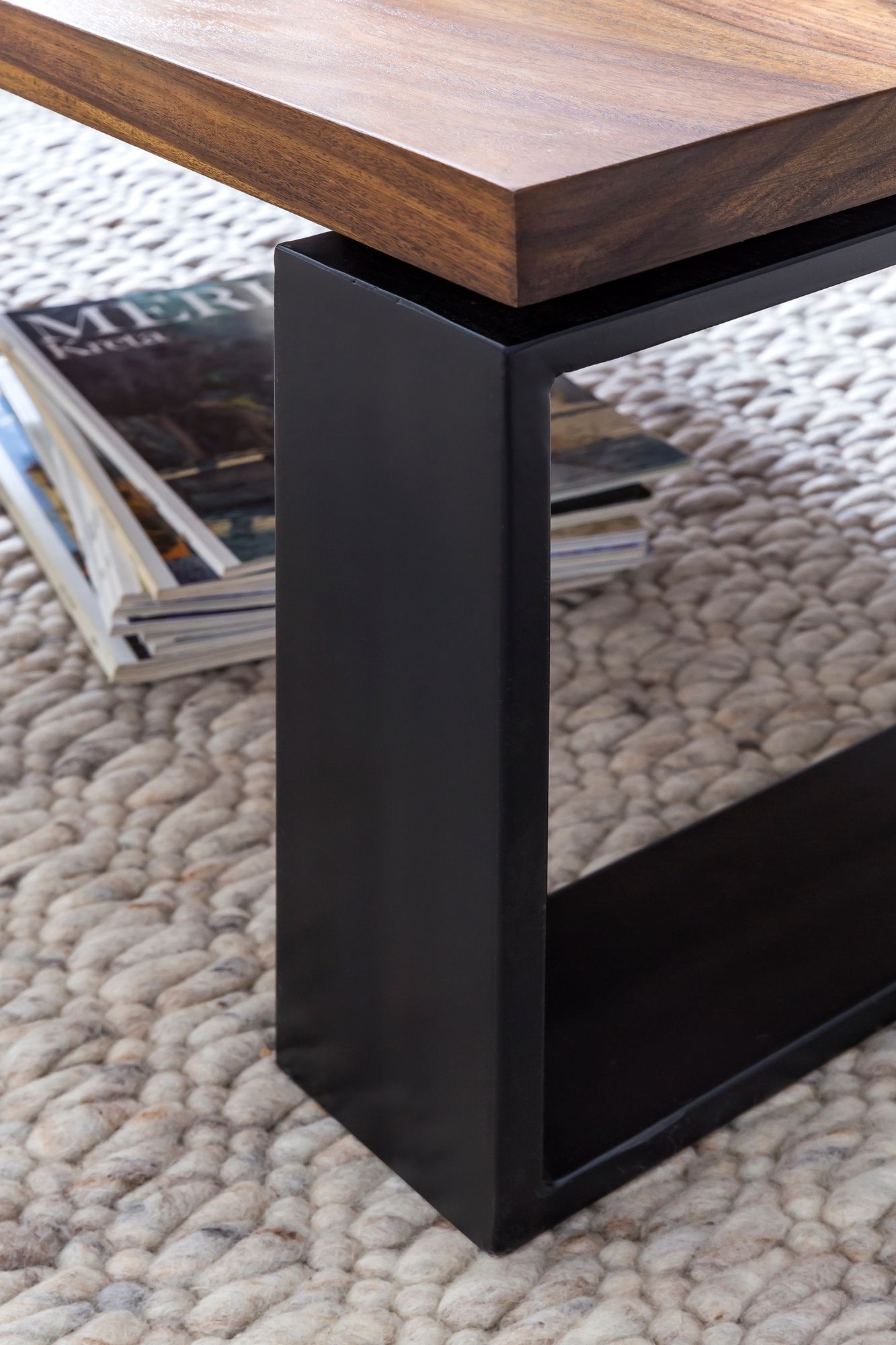 Ein echter Blickfang für dein Wohnzimmer! Dieser massive Couchtisch aus Eiche kombiniert rustikalen Charme mit moderner Funktionalität. Robust, stylisch und mit praktischem Stauraum.\n\nTechnische Daten:\n• Maße: 120x60x40 cm - perfekte Proportionen\n• Material: 100% Massivholz (Gummiholz) - extrem stabil\n• Farbe: Walnuss - zeitlos elegant\n• Tragkraft: Hoch - für alles was du brauchst\n• Gewicht: Stabil aber nicht zu schwer\n\nBesondere Features:\n• Geschwungene Stauräume - beidseitig praktisch\n• Verdickte Tischbeine - extra stabil\n• Glatte Oberfläche - wasserdicht und pflegeleicht\n• Metallverbindungen - für lange Haltbarkeit\n• Einfache Montage - schnell aufgebaut\n\nEinsatzbereiche:\n• Wohnzimmer als Mittelpunkt\n• Arbeitszimmer als Beistelltisch\n• Terrasse für gemütliche Abende\n• Gästezimmer für zusätzliche Ablage\n\nWarum dieser Tisch so besonders ist:\n• Natürliche Maserung - jedes Stück ein Unikat\n• Viel Ablagefläche - für Bücher, Snacks, Dekoration\n• Praktische Höhe - alles gut erreichbar\n• Zeitloses Design - passt zu vielen Einrichtungen\n• Hochwertige Verarbeitung - für Jahre Freude\n\nStell dir vor: Du sitzt gemütlich auf dem Sofa, hast Platz für dein Getränk, dein Buch und den Laptop - alles griffbereit und organisiert. Die geschwungenen Fächer unten bieten zusätzlichen Stauraum für Fernbedienungen oder Zeitschriften.\n\nPerfekte Ergänzung für ein gemütliches Zuhause. Hol dir jetzt diesen qualitativ hochwertigen Couchtisch und genieße Komfort mit Stil!