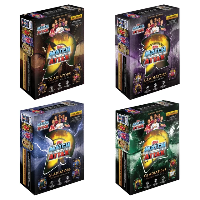 Alter, die neue Match Attax Saison 2025/26 ist da! Dieses Mega Tin ist vollgepackt mit 45 brandneuen Karten aus UEFA Champions League, Europa League und Conference League. Und das Beste: Drei exklusive Gladiators Limited Edition-Karten sind auch dabei! Insgesamt 524 neue Karten warten darauf, gesammelt zu werden - mit coolen neuen Kategorien wie Leaders, Cup Champions, Showboats und Magic Memories. Halte Ausschau nach seltenen Black Edge-Karten, Infinity-Karten oder den begehrten Platin-Pull-Karten. Vielleicht hast du ja Glück und findest eine echte Reliktkarte mit Trikotstücken oder sogar eine Autogrammkarte! Alles offiziell lizenziert von der UEFA - also echte Profi-Spieler von den besten Clubs Europas. Perfekt für alle Fußball-Fans und Sammler. Ob zum Tauschen mit Freunden oder um deine Sammlung zu komplettieren - dieses Mega Tin ist der absolute Hit! Einfach öffnen, Karten durchschauen und staunen, welche Rare Cards du diesmal erwischst. Die Saison kann kommen!