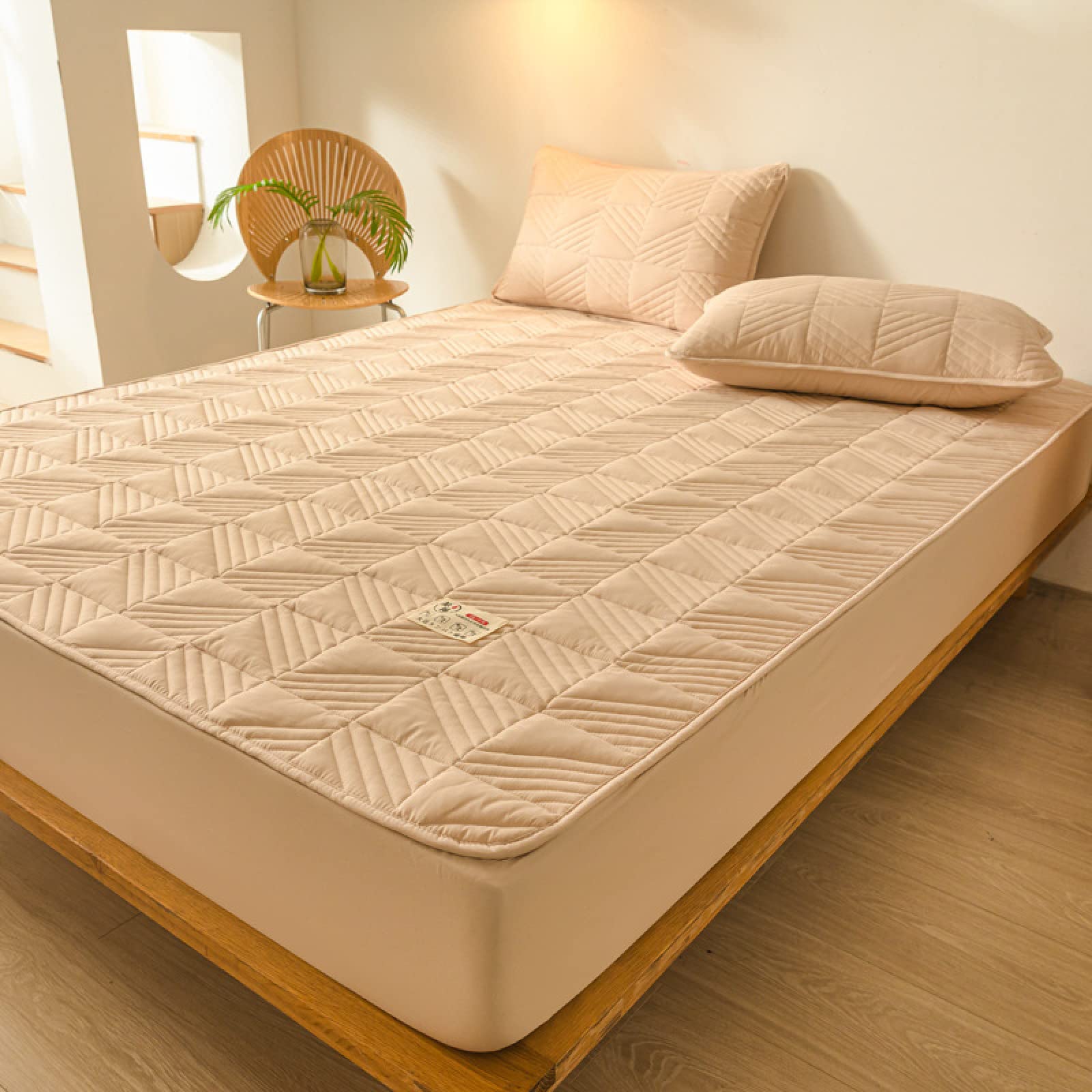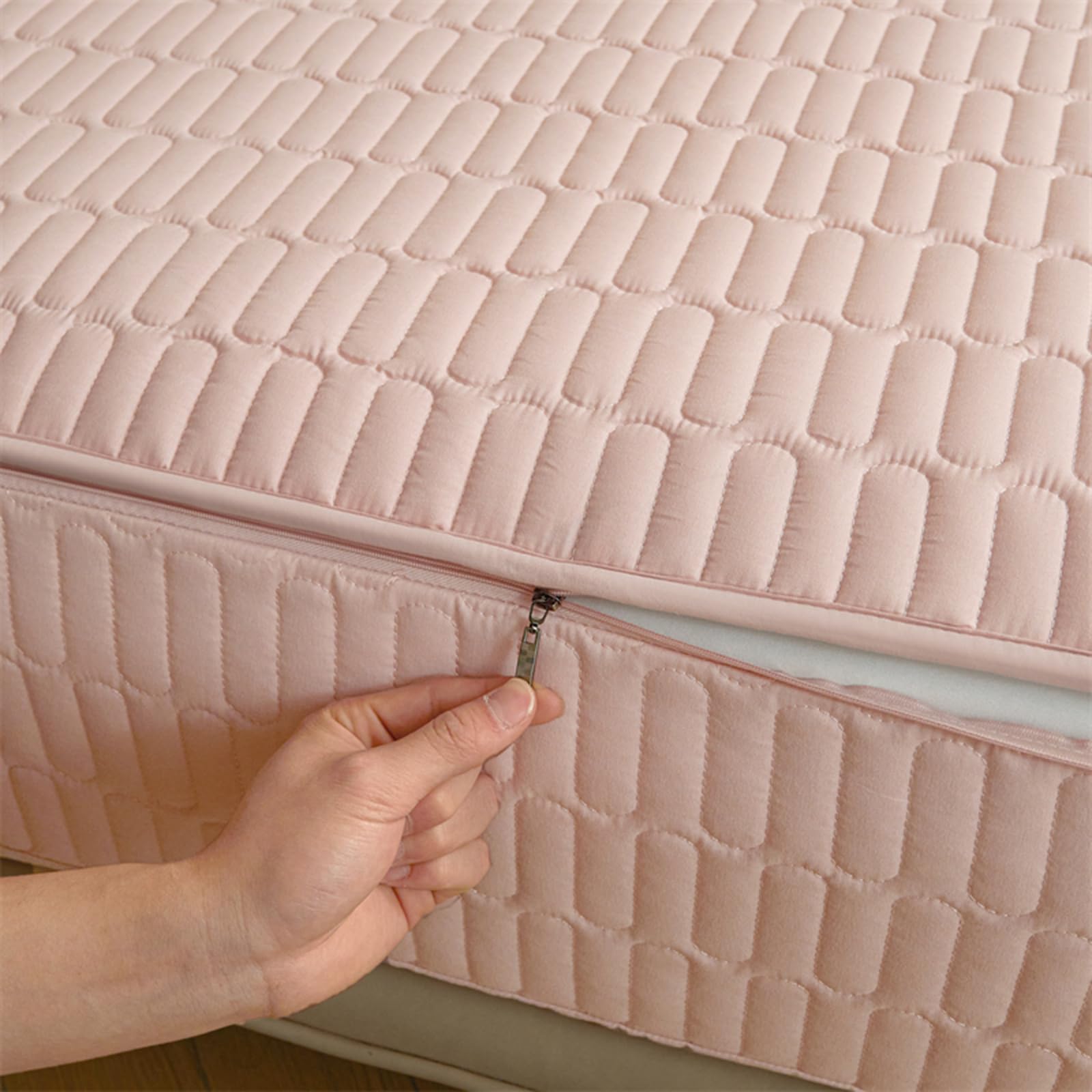 Deine Matratze verdient den besten Schutz! Dieser gesteppte Matratzenschoner in Rosa umschließt deine Matratze komplett wie eine zweite Haut. Mit Reißverschluss - super easy an- und abzuziehen. Maße: 160x200cm + 20cm Höhe, perfekt für Einzel-, Doppel- oder King-Size Betten. Das dreilagige Design: Vorne verdickte Polyesterfaser, Mitte Federseiden-Baumwolle, hinten weicher hautfreundlicher Stoff. Atmungsaktiv und bequem - keine Rückenschmerzen garantiert! Schützt vor Flecken, Staub und Hausstaubmilben. Einfach in der Maschinenwäsche und verformt sich nicht. Passt sich deiner Matratze perfekt an und verhindert Rutschen. Übrigens: Andere Bettwäsche ist nicht im Lieferumfang. Bei Sondergrößen einfach melden! Hol dir diesen praktischen Schoner und verlängere das Leben deiner Matratze!