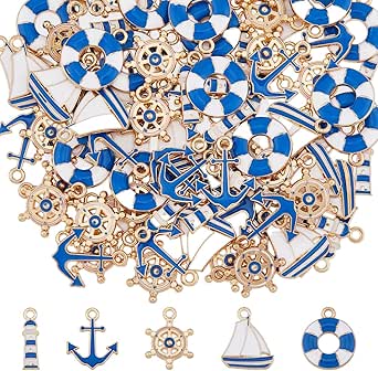 Tauche ein in die bunte Welt des Meeres! Dieses 72-teilige Charm-Set mit Seesternen, Muscheln und anderen Meeresbewohnern ist einfach traumhaft für alle Bastelfans. Jeder Anhänger ist aus hochwertiger Emaille-Legierung gefertigt und glänzt wunderschön. Die Größen zwischen 16-19,5mm sind perfekt für Schmuckprojekte. Ob Ohrringe, Armbänder, Halsketten oder Schlüsselanhänger - deiner Kreativität sind keine Grenzen gesetzt! Die verschiedenen Blautöne und Meeresmotive bringen sofort Sommerfeeling in deine Kreationen. Super als Geschenk für Freundinnen oder einfach für dich selbst. Die Qualität überzeugt: Nicht brechbar, nicht verformbar und die Farben bleiben lange schön. Mit den 1,6-2,5mm Löchern lassen sich die Charms leicht verarbeiten. Einfach ein Traum-Set für alle, die maritimen Schmuck lieben!