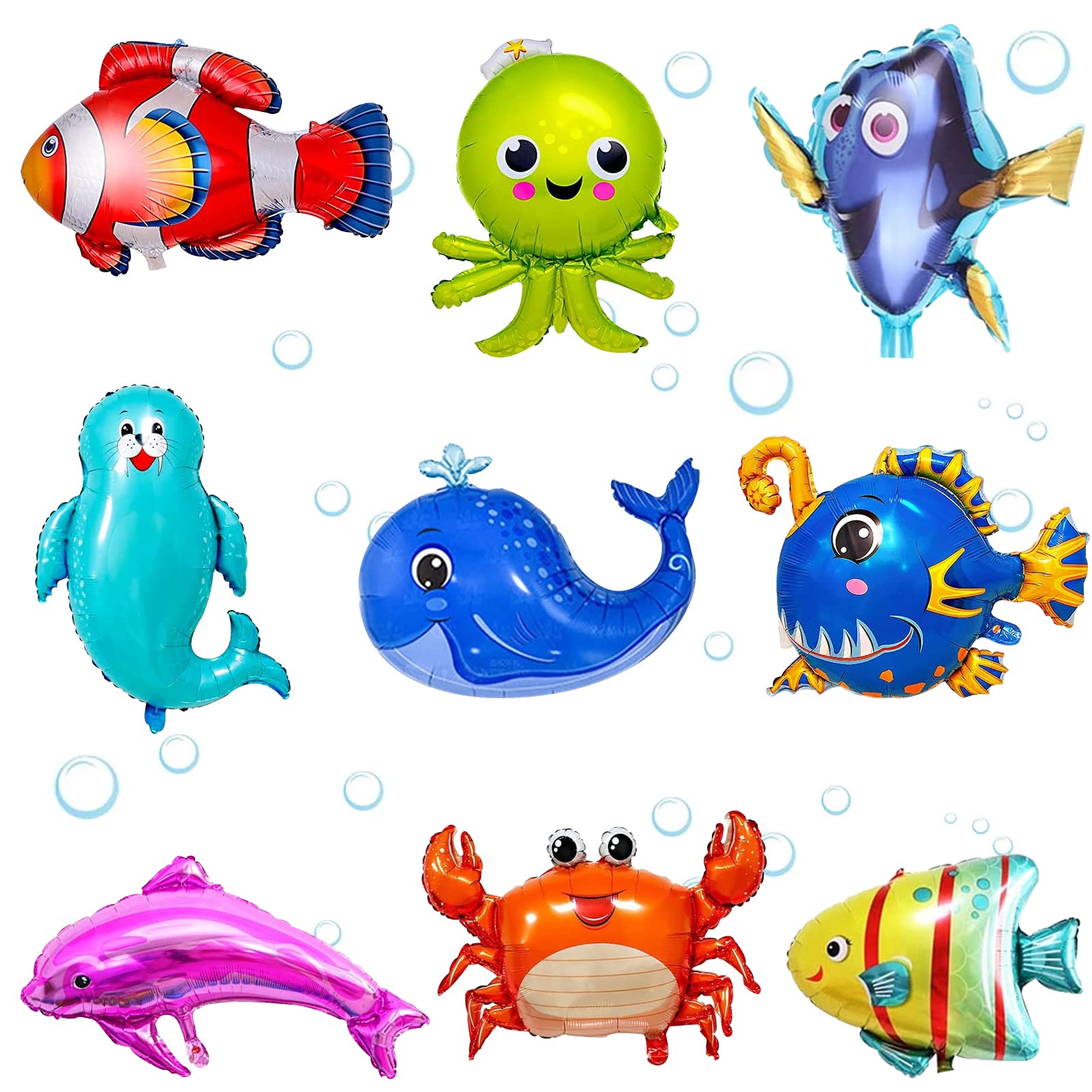 Mädels, diese Meerestier-Ballons sind der absolute Hit für jede Kinderparty! Du bekommst 7 verschiedene Motive: Delfin, Krabbe, Hai, Schildkröte, Garnele, Seepferdchen und Robbe - also die komplette Unterwasserwelt für deine Deko. Aus hochwertiger Aluminiumfolie gefertigt, platzen nicht so leicht und stehen super stabil. Perfekt für Unterwasser-Mottopartys, Kindergeburtstage oder Sommerfeste. Sieht total niedlich aus und die Kinder werden begeistert sein! Einfach aufblasen und schon steht die Deko - kein langes Herumgefummel mit Aufhängung nötig. Kann aber auch an Decke oder Wand gehängt werden. Bringt sofort Partystimmung in jeden Raum! Wenn du also mal was Besonderes für die nächste Kinderparty suchst, dann sind diese Meerestier-Ballons genau das Richtige. Einfach aufstellen und über die strahlenden Kinderaugen freuen!
