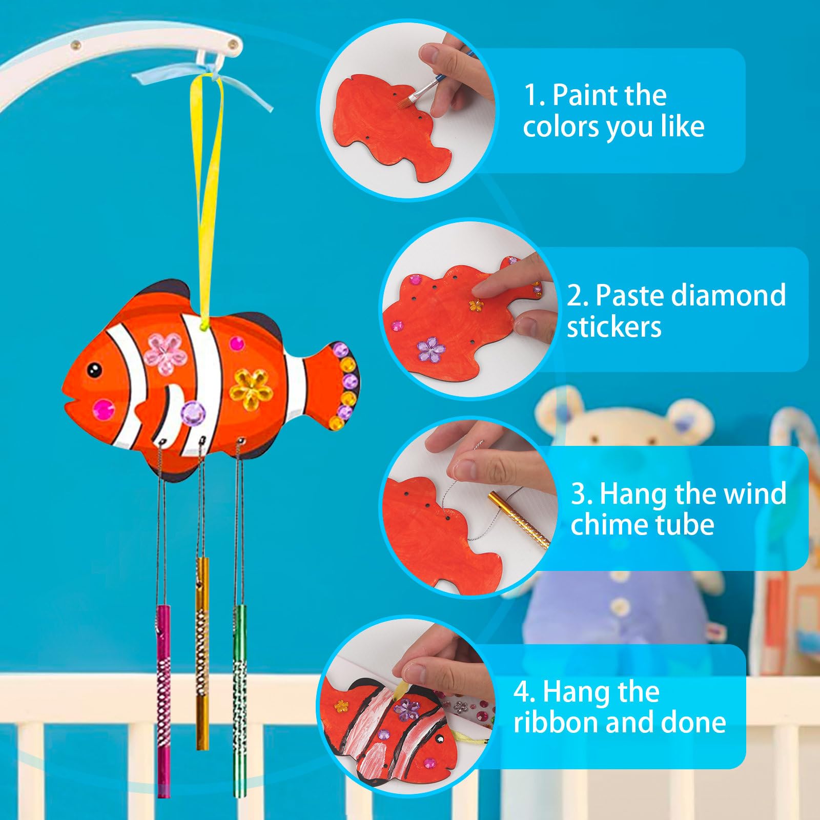 Wow, was für ein cooles Bastelset! Hier können Kinder ihr eigenes Windspiel mit Meerestier-Motiven basteln. Im Set sind 10 verschiedene Holz-Figuren, 30 bunte Röhren in drei Farben, Silberdraht, farbiges Seil und sogar Strass-Aufkleber dabei - alles was man braucht! Die Holz-Teile sind schon vorgeschnitten, super glatt und ungiftig - total sicher für Kinder. Da kann man nach Herzenslust malen und dekorieren. Das fertige Windspile klingt wunderschön und sieht als Deko im Garten, auf dem Balkon oder im Kinderzimmer einfach toll aus. Perfekt für Kindergeburtstage, verregnete Nachmittage oder als Geschenk. Fördert die Kreativität und macht einfach Spaß! Auch für Erwachsene, die gerne basteln - Meerestier-Fans aufgepasst!