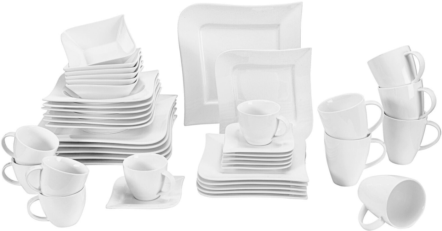 Kaffeegenuss auf höchstem Niveau! Dieses 20-teilige Melodie Kaffeeservice von Ritzenhoff & Breker ist einfach traumhaft. Die geschwungenen Formen sehen aus wie eine Melodie - harmonisch und elegant. Aus hochwertigem Porzellan gefertigt, ist das Service spülmaschinenfest und super pflegeleicht. Im Set enthalten: 6 Kaffeetassen (190ml), 6 Untertassen (14cm), 6 Dessertteller (20,5cm), plus Milchkännchen und Zuckerdose. Perfekt für gemütliche Kaffeekränzchen mit Freunden oder Familienfeiern. Das schlichte weiße Design passt zu jedem Einrichtungsstil und ist ein echter Hingucker auf dem Tisch. Deutsche Qualität vom Feinsten - Ritzenhoff & Breker steht für erstklassige Verarbeitung und zeitloses Design. Ob für den täglichen Gebrauch oder besondere Anlässe - dieses Kaffeeservice macht immer eine gute Figur! Deine Gäste werden begeistert sein!