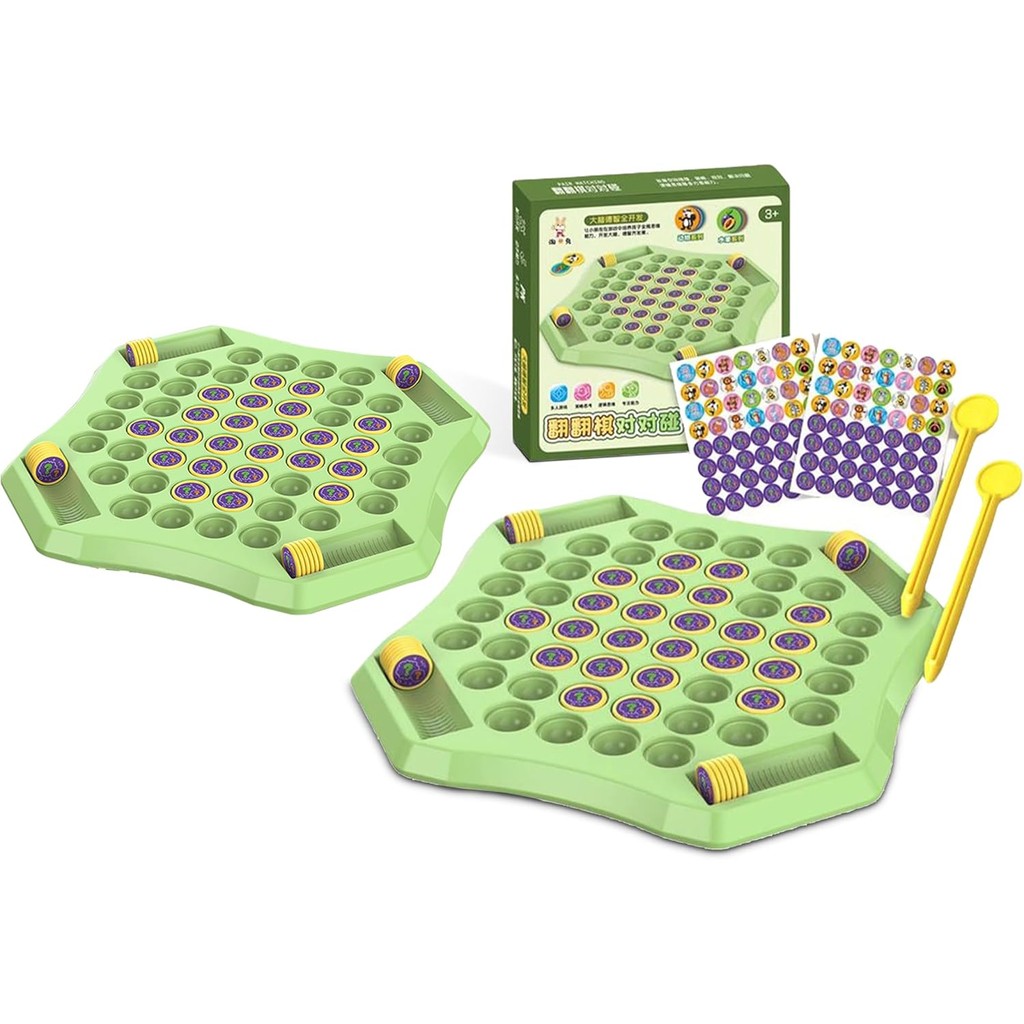 Was für ein cooles Memory-Spiel! Dieses Flip-Schach Memory kombiniert Memory-Spaß mit strategischem Denken - und das für Kinder ab 3 Jahren. \\n\\nGröße: 31,5x31,5cm - schön groß für kleine Hände. Material: ABS-Kunststoff - robust und langlebig. \\n\\nInhalt: 52 Schachfiguren mit Tier- und Obst-Aufklebern - die Kinder können die Aufkleber sogar selbst aufkleben und so ihre Feinmotorik trainieren! \\n\\nSpielprinzip: Klassisches Memory mit Twist - zwei Spieler müssen innerhalb der Zeit die Paare finden. Der mit den meisten Paaren gewinnt! \\n\\nLerneffekt: Kinder lernen spielerisch verschiedene Tiere und Früchte kennen und trainieren ihr Gedächtnis und strategisches Denken. \\n\\nFür 2-4 Spieler - perfekt für Familienspieleabende oder Spielenachmittage mit Freunden. \\n\\nMit praktischem Fingerstick und Werkzeugstift - macht das Umdrehen der Figuren besonders einfach. Einfach ein tolles Spiel das nicht nur Spaß macht, sondern auch die Entwicklung fördert!