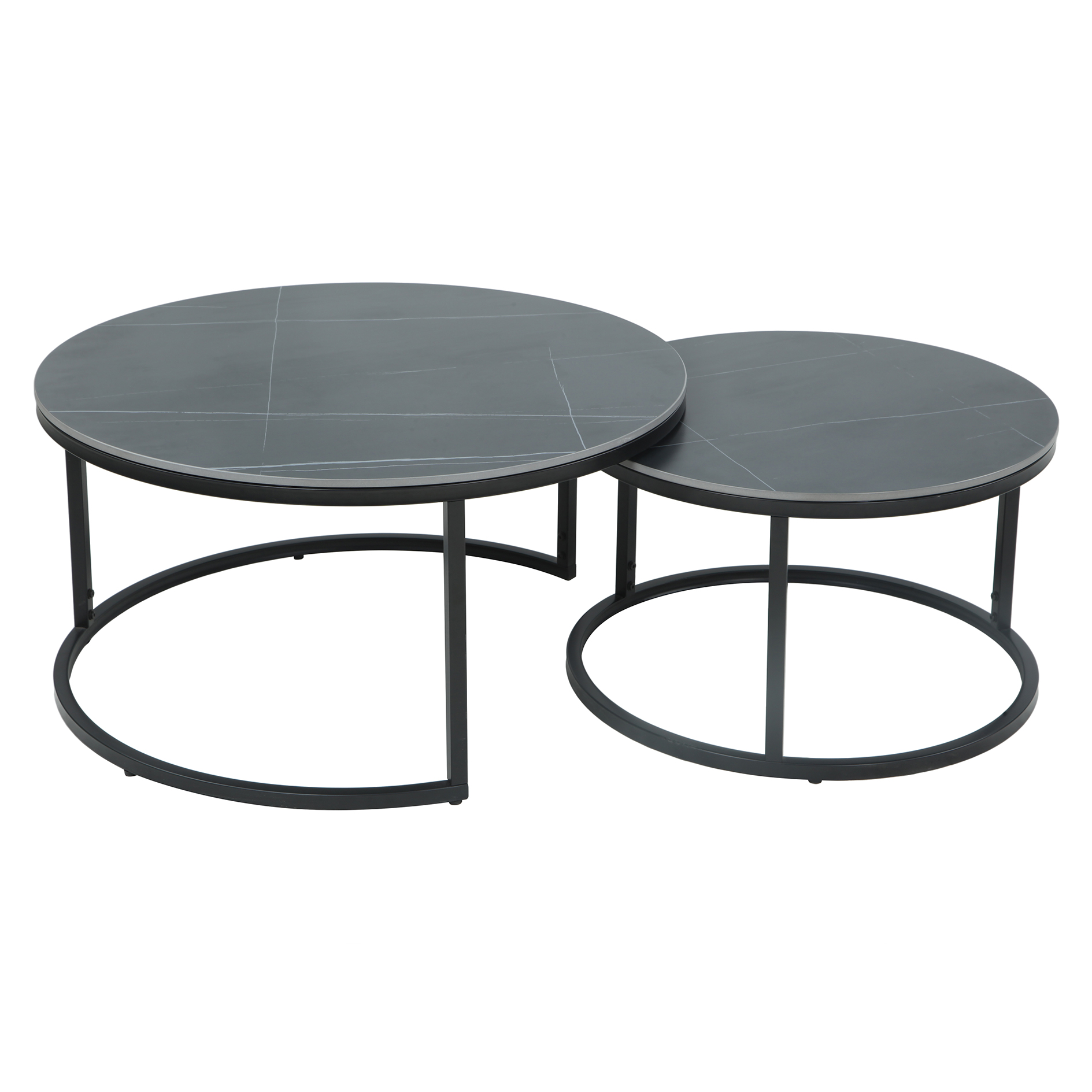 Merax 2er Set Couchtische Schwarz - Moderne Beistelltische Mit Marmoroptik