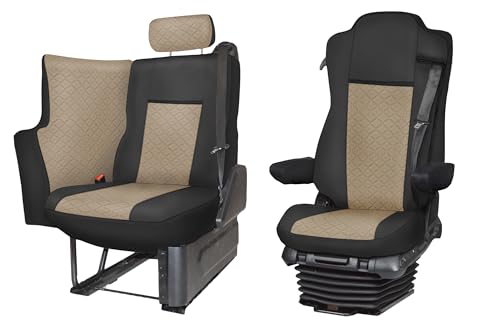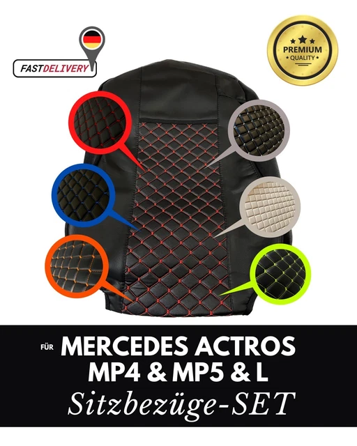 Hey du LKW-Fahrer! Deine Sitze im Actros sehen schon etwas mitgenommen aus? Diese Sitzbezüge machen sie wieder wie neu! Speziell für Mercedes Actros MP4 und MP5 Modelle ab 2014 entwickelt. Das Set enthält 2 Bezüge - für Fahrer- UND Beifahrersitz! Aus dreilagigem, hochwertigem Öko-Leder mit schwarzem Mittelstück in der coolen Schwarz/Beige-Kombination. Die Bezüge sind waschbar bei 30°C - super praktisch bei Verschmutzungen. Einfach über die originalen Sitze ziehen, festmachen - fertig! Schützen deine Sitze vor Abnutzung, Sonneneinstrahlung und Verschleiß. Das gesteppte Design sieht nicht nur gut aus, sondern ist auch mega bequem. Perfekter Schutz für deine teure LKW-Innenausstattung! Ob für die täglichen Touren oder die Langstrecke - mit diesen Bezügen sitzt du einfach besser. Und falls mal was daneben geht - ab in die Waschmaschine damit! Dein Actros verdient das Beste - gönn ihm diese hochwertigen Bezüge!