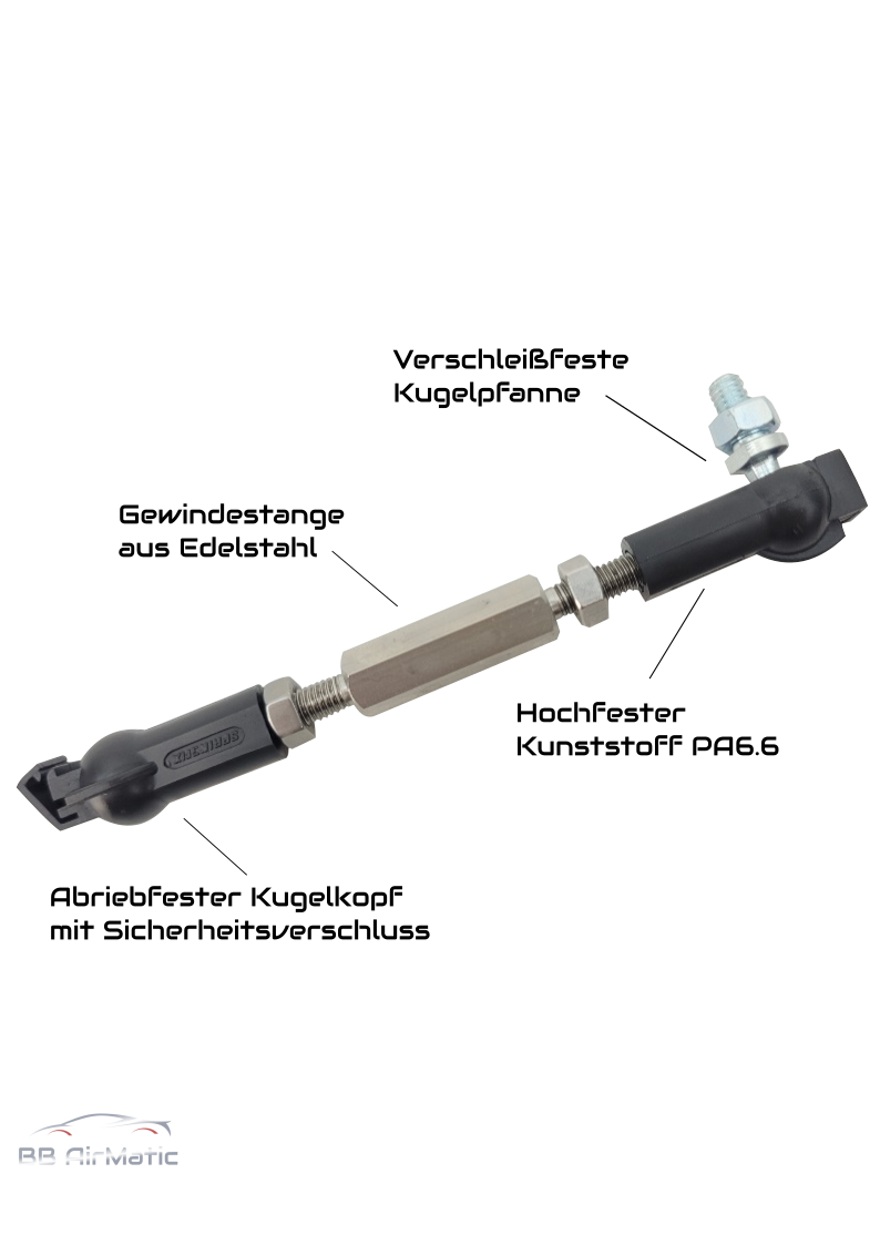 Willst du deinen Mercedes CL sportlicher aussehen lassen? Mit diesem Tieferlegungskit von M.S-handel geht das ganz easy! Das Beste: Du brauchst keine Software-Updates oder komplizierte Einbauten. Einfach die originalen Koppelstangen gegen diese hier tauschen und schon kannst du dein Fahrzeug millimetergenau absenken. Vorne 5-70mm, hinten 5-80mm - komplett stufenlos einstellbar! Und das beste: Das Luftfahrwerk funktioniert weiterhin normal, alle Komfortfunktionen bleiben erhalten. Die Einbauzeit beträgt nur 30-45 Minuten in der Werkstatt. Aus hochwertigen Materialien - es gibt verschiedene Versionen mit Metall- oder Kunststoffkugelköpfen. Wenn du mal wieder zurückrüsten willst, geht das problemlos. Verbessert nicht nur das Aussehen, sondern auch das Fahrverhalten - dein CL wird agiler und sportlicher! Kompatibel mit allen CL W215/W216 Modellen, egal welches Baujahr oder Motor.
