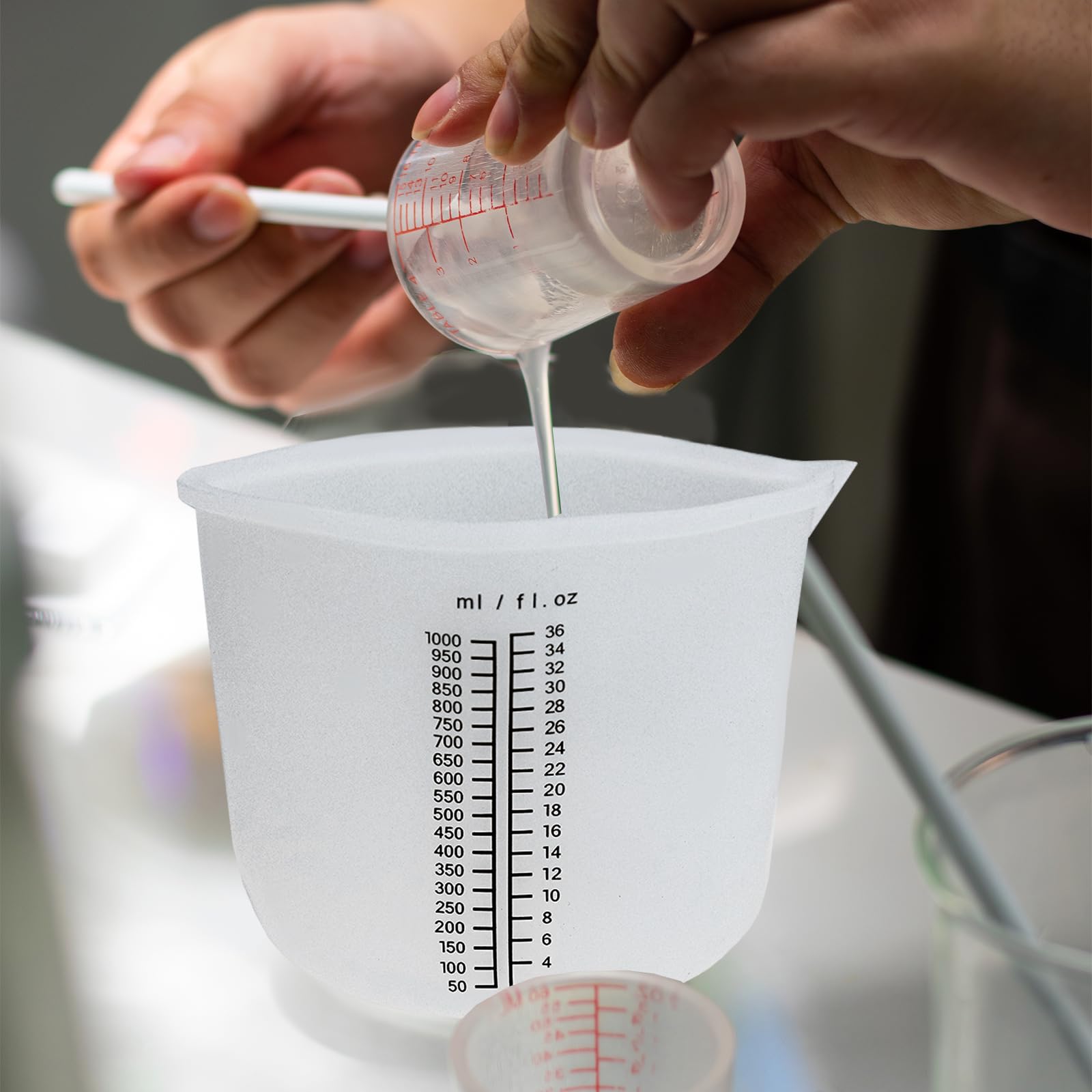 Kreative aufgepasst! Dieser Silikon-Messbecher ist dein neuer bester Freund für alle Bastelprojekte. Mit stolzen 1000 ml Fassungsvermögen hast du genug Platz für Epoxidharz, Gießpulver oder Farben. Inklusive sind praktische Rührstäbchen aus Silikon - alles was du brauchst in einem Set! Die Skala ist gut lesbar in metrisch und imperial, also keine komplizierten Umrechnungen mehr. Das flexible Silikon macht das Ausgießen super einfach und du kannst den Becher afterwards einfach ausquetschen. Reinigen ist kein Problem - alles läuft rückstandslos ab. Perfekt für DIY-Projekte, Harzgüsse, Kerzen machen oder auch in der Küche. Das Material ist langlebig und hitzebeständig. Kein Kleben, kein Verkrusten - einfach praktisch! Ob für Anfänger oder Profis: Mit diesem Becher machst du garantiert nichts falsch. Hol dir das Set und leg los mit deinen kreativen Ideen!