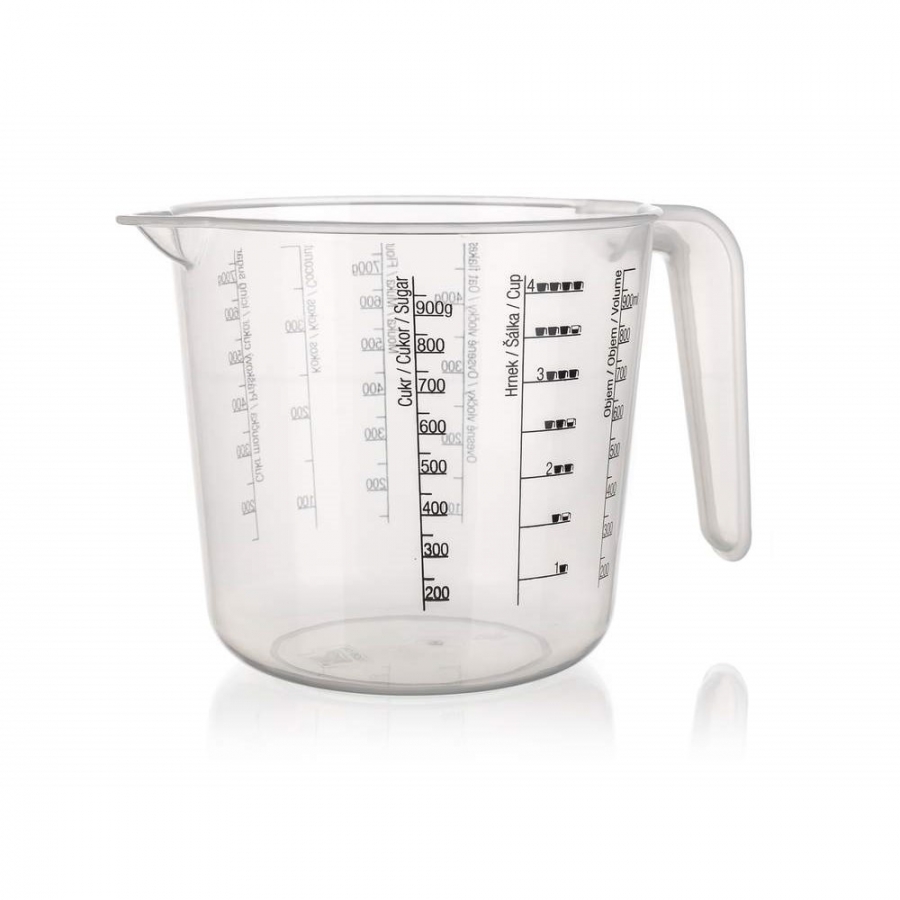 Der Alleskönner für Küche und Hobby! Dieser transparente Messbecher aus hochwertigem PP-Kunststoff fasst volle 1000ml und ist dabei hitzebeständig und korrosionsfest. Mit praktischem Griff liegt er sicher in der Hand. Nur 80g leicht und mit ca. 17cm Höhe sowie 9,5cm Bodendurchmesser passt er in jede Schublade. Perfekt zum Abmessen von Flüssigkeiten, Mehl, Zucker oder für kleine Experimente. Einfach zu reinigen und absolut geschmacksneutral. Ein unverzichtbarer Helfer in jeder Küche - ob für Profi-Köche oder Hobby-Bäcker!