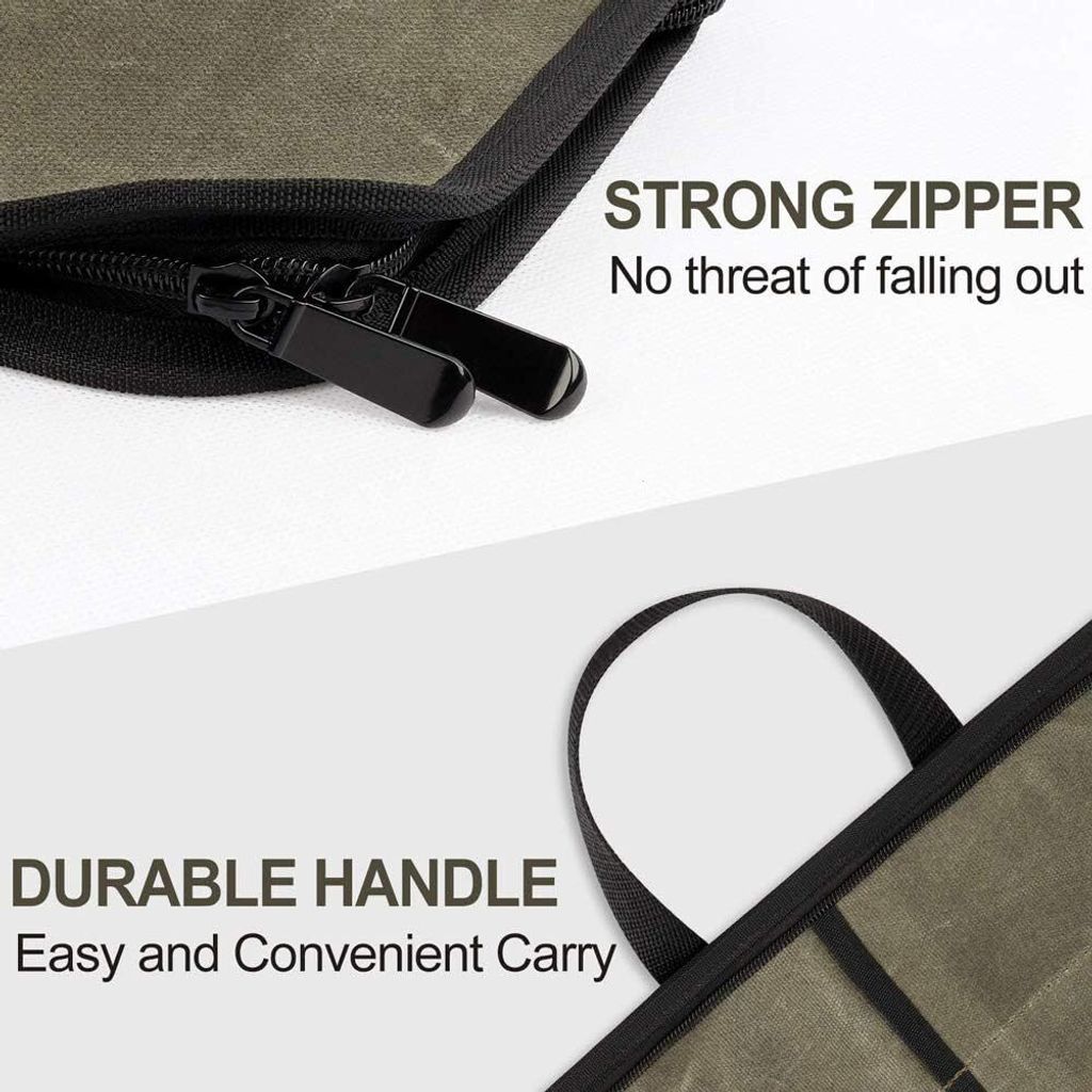 Sicher unterwegs mit deinen Messern! Diese Canvas-Tasche in Armee-Grün hat 8 Fächer für Messer bis 10cm Länge. Aus robustem, wasserabweisendem Canvas - schnittfest und langlebig. Aufgerollt nur 44x10cm, ausgeklappt 65x45cm. Mit Zugband für sicheren Verschluss - nichts fällt raus! Perfekt für Camping, Picknick oder Küche. Schützt deine Messer vor Beschädigungen und dich vor Schnitten. Einfach Messer rein, zusammenrollen, zubinden - fertig! Ob Brotmesser, Küchenmesser oder Werkzeuge - alles hat seinen Platz. Macht den Transport von Messern sicher und einfach. Für alle, die ihre Messer ordentlich verstauen wollen.