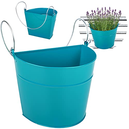 Bring Farbe auf deinen Balkon oder in den Garten! Dieser wunderschöne Hängeblumentopf in kräftigem Türkis/Mint ist aus hochwertigem Metall gefertigt und absolut wetterfest. Mit 22cm Durchmesser oben und 2,5 Litern Füllmenge bietet er genug Platz für deine Lieblingspflanzen. Der abnehmbare Haken ist universell biegbar und passt an alle gängigen Geländer - ob Balkon, Zaun oder sogar Europaletten. Die halbrunde Form ermöglicht auch die Montage an glatten Wänden (einfach ein Loch bohren). Mit Anti-Rost-Beschichtung, UV-beständig und frostsicher - perfekt für drinnen und draußen. Die 3D-Rillen-Prägung gibt dem Topf eine besondere Optik. Übrigens: Du kannst ihn auch mit deinem Wunschnamen personalisieren! Ob als Blumentopf, Deko-Element oder Aufbewahrung - dieser Kübel ist vielseitig einsetzbar.