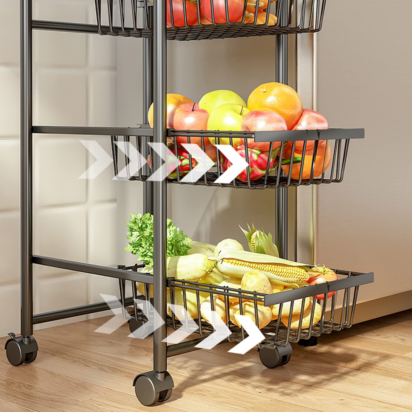 Das luftdurchlässige Design hält dein Obst und Gemüse länger frisch - keine matschigen Bananen oder schimmeligen Trauben mehr! Die einzelnen Schichten sind modular aufgebaut - du kannst sie je nach Bedarf anordnen oder sogar einzeln nutzen.