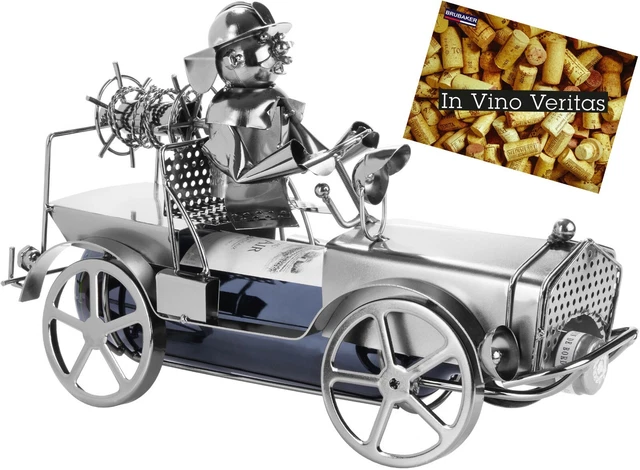 Howdy Partner! Dieser coole Cowboy-Flaschenhalter ist das perfekte Geschenk für alle, die Western-Flair lieben! Die Metall-Skulptur ist nicht nur praktisch, sondern auch ein richtiger Hingucker in jeder Wohnung oder Bar. Mit einer Höhe von etwa 35cm (mit Flasche) ist sie genau die richtige Größe - nicht zu klein, nicht zu groß.\n\nStell dir vor: Deine Wein- oder Whiskyflasche thront elegant in den Armen dieses lässigen Cowboys. Die Skulptur ist aus robustem Metall gefertigt und steht sicher auf jeder Oberfläche. Die Maße von 26cm Breite und 12,5cm Tiefe sorgen für einen stabilen Stand.\n\nWas ich besonders süß finde: Eine Geschenkkarte ist schon dabei! Perfekt also für den nächsten Geburtstag, Junggesellenabschied oder einfach als Mitbringsel für gute Freunde. Mein Bruder, der ein großer Western-Fan ist, war total aus dem Häuschen, als er den Flaschenhalter zu seinem Geburtstag bekommen hat!\n\nDie Verarbeitung ist echt hochwertig - keine scharfen Kanten, die Farbe sitzt perfekt und der Cowboy hat so viele liebevolle Details. Er passt Flaschen mit einem maximalen Halsdurchmesser von 3cm, also die meisten Standardflaschen.\n\nOb im Wohnzimmer, in der Bar oder im Büro - dieser Cowboy bringt immer gute Laune mit! Und das Beste: Die Flasche ist schnell rausgenommen und wieder reingestellt, ohne dass man irgendwas auseinanderbauen muss. Einfach ein geniales Geschenk für coole Typen (und natürlich auch für coole Frauen!)