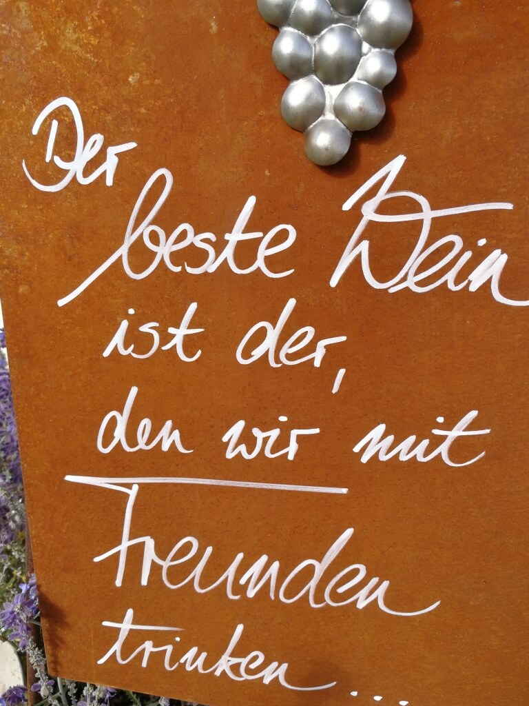 Hey, dieses Wein-Metallschild ist ja mal richtig gemütlich! Mit dem schönen Weinreben-Motiv und dem passenden Spruch - verwandelt es jeden Garten in eine gemütliche Weinlaube. Aus Aluminium gemacht - rostet nicht und ist witterungsbeständig. Maße von 7,5x20 cm - die perfekte Größe für Tür oder Wand. Der hochwertige Druck mit glänzenden Farben sieht einfach klasse aus. Kannst du mit Schrauben fest montieren oder mit Schnur aufhängen - ganz wie du möchtest. Perfekt für Weinliebhaber, Winzer oder einfach alle, die gemütliche Abende im Garten lieben. Macht sich super an der Haustür, Gartenlaube oder auch im Wohnzimmer. Einfach aufhängen und sofort fühlst du dich wie in nem Weingut in Italien! Super Geschenk für Wein-Freunde oder einfach für dich selbst. Einfach mal bestellen und deinem Zuhause mehr Gemütlichkeit verleihen!