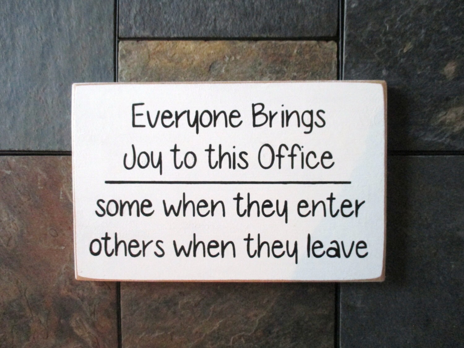 Coole Deko für deine vier Wände! Dieses Metallschild mit dem Spruch Everyone Brings Joy to This Office im Vintage-Look ist ein echter Hingucker. Maße: 20x30cm - perfekt für Wand oder Regal.