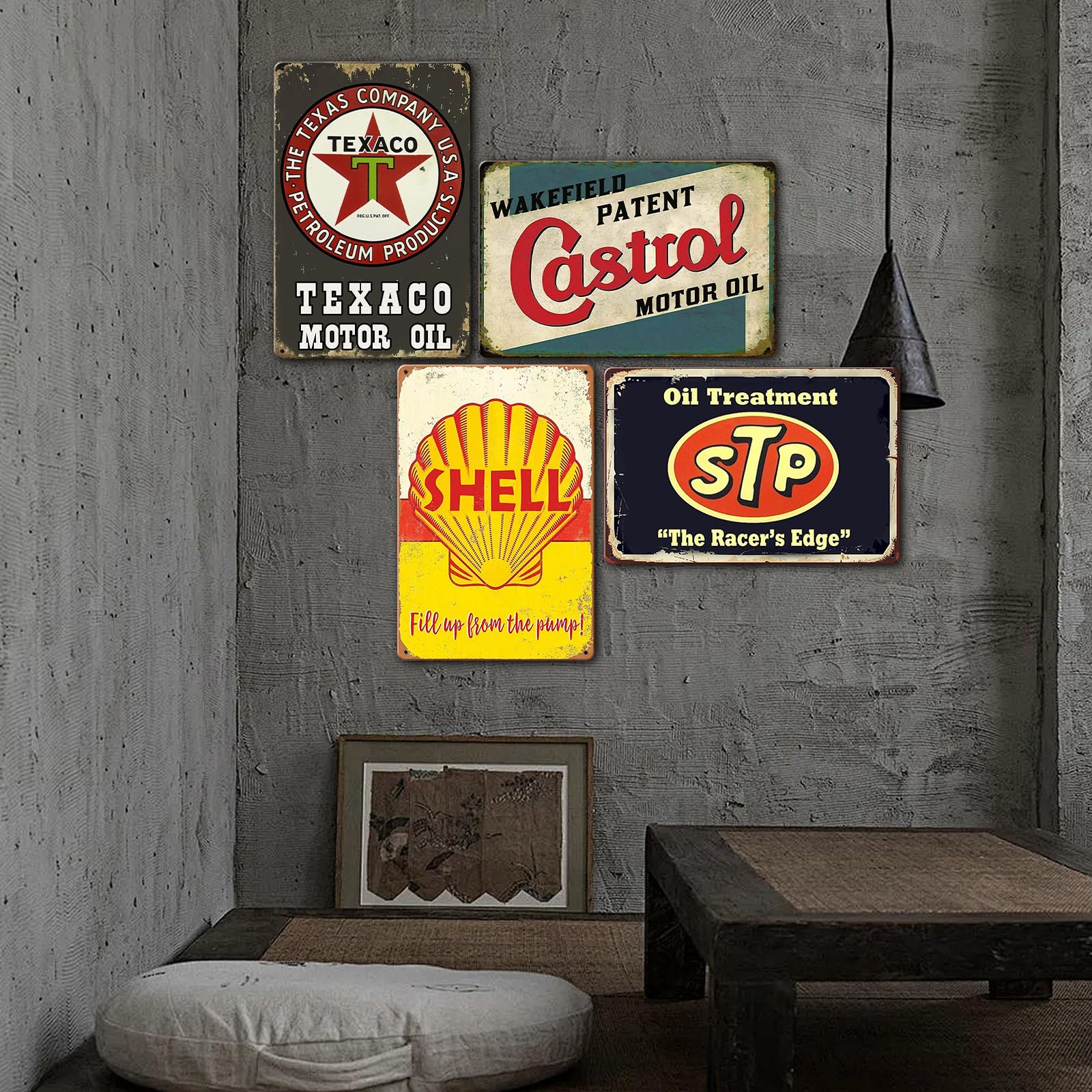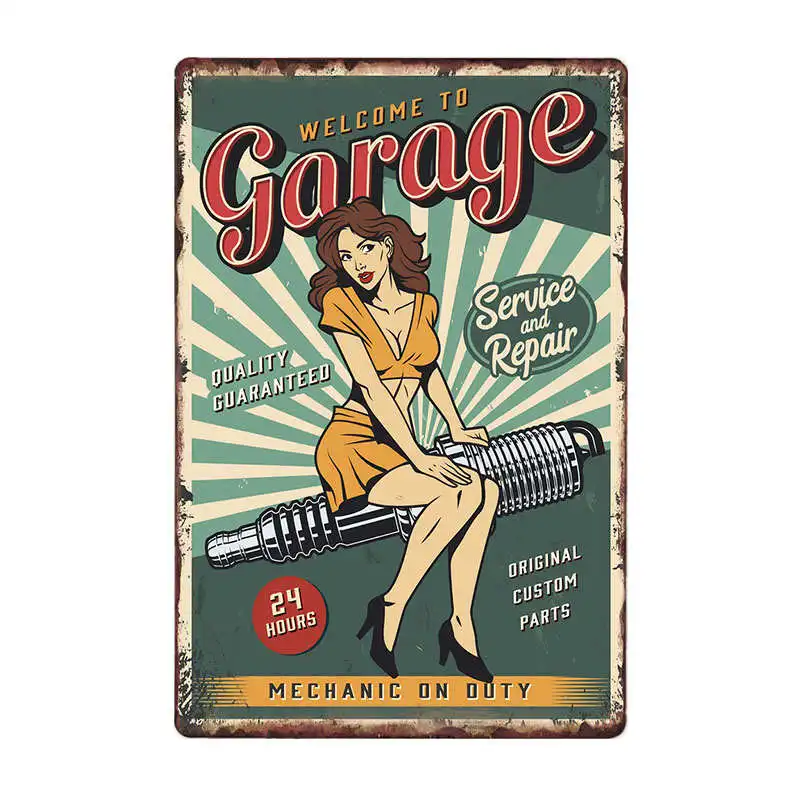Verwandle deine Garage in eine nostalgische Werkstatt! Dieses 6er-Set Vintage Metallschilder im Maß 20x30cm zeigt ikonische Automotiv-Motive wie Schmieröl, Rennsport und Kraftstoff. Aus robustem Blattblech mit verwittertem Look - rostresistent und langlebig. Einfache Montage dank vorgebohrter Löcher (Nägel nicht enthalten). Perfekt für Garage, Werkstatt, Bar oder Herrenhöhle. Ein absolutes Muss für Autofans und Sammler! Tolle Geschenkidee für Geburtstage oder Vatertag. Hol dir den Charme der goldenen Automobil-Ära nach Hause!