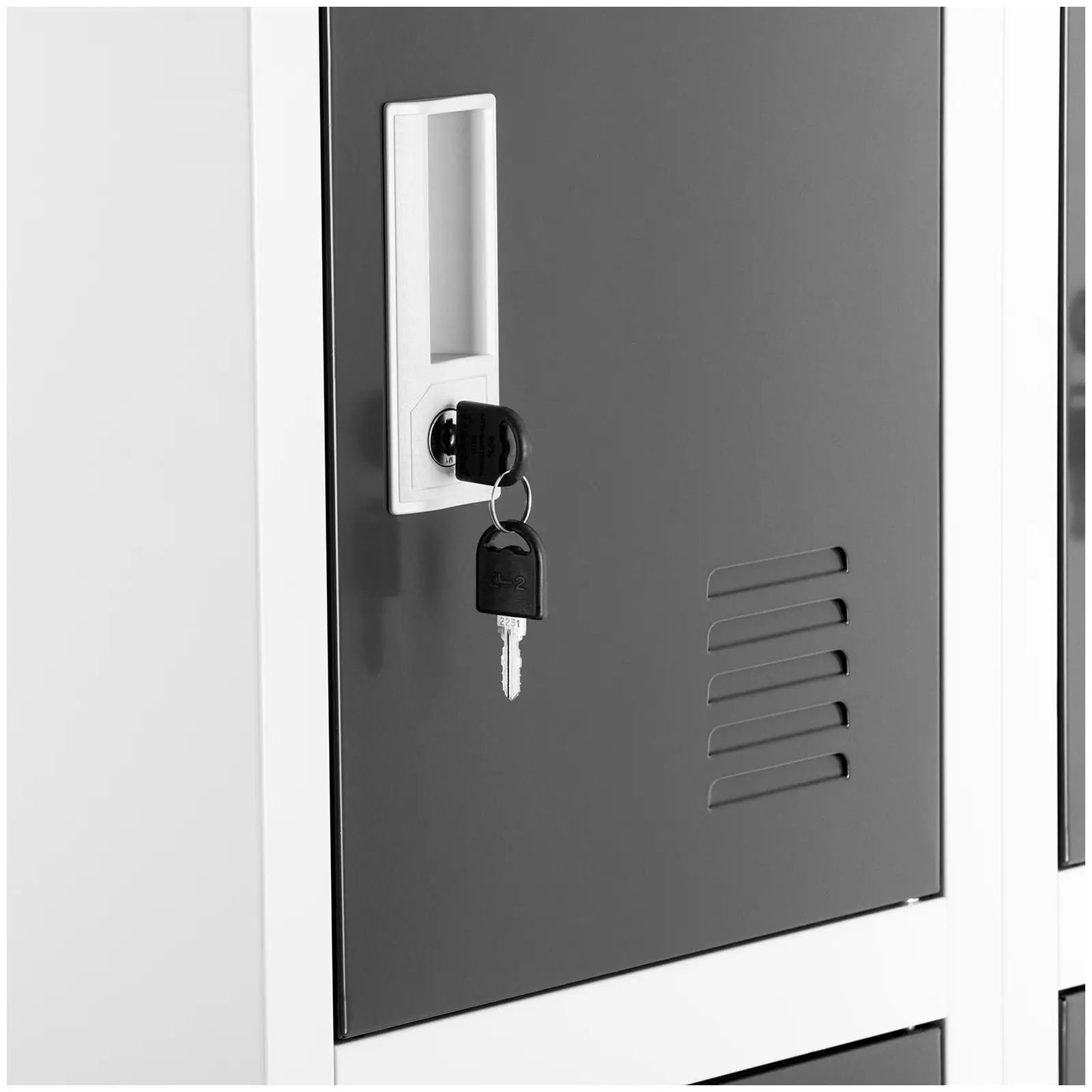 Endlich Ordnung und Sicherheit für deine Wertsachen! Dieser robuste Metallspind von Fromm & Starck mit 3 abschließbaren Fächern ist der perfekte Aufbewahrungshelfer für Büro, Schule oder Schwimmbad. Jedes Fach ist mit einem soliden Dreipunkt-Zylinderschloss gesichert und du bekommst pro Fach zwei Schlüssel aus langlebiger Zinklegierung. Die Einlegeböden halten jeweils bis zu 20 kg aus - da kannst du auch schwere Akten oder Equipment sicher verstauen. Die praktischen Sichtfenster an den Türen und die Belüftungslöcher sorgen für frische Luft und Übersicht. Aus widerstandsfähigem Stahl mit Epoxidharz-Beschichtung hält dieser Schrank auch in rauer Umgebung stand. Die verstärkten Scharniere geben zusätzliche Sicherheit. Wichtig: Den Schrank bitte an der Wand befestigen, damit er nicht umkippen kann. Einfach zusammenzubauen und sofort einsatzbereit - deine persönlichen Sachen sind jetzt bestens geschützt!