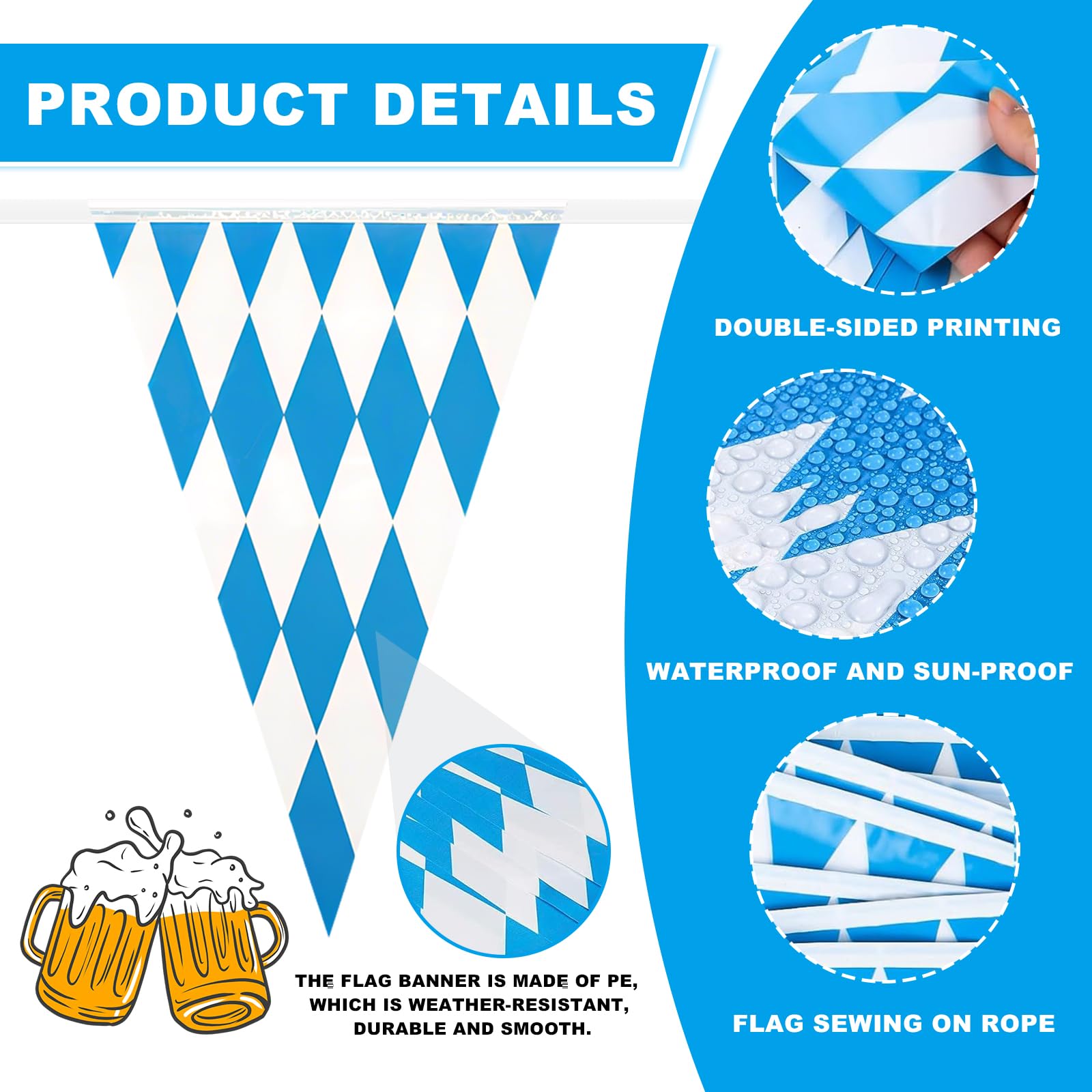 Hol dir echtes Oktoberfest-Feeling nach Hause! Mit unserer riesigen 60-Meter-Wimpelkette in den klassischen bayerischen Farben Blau und Weiß verwandelst du jeden Raum oder Garten im Handumdrehen in eine gemütliche Wiesn. Jeder der dreieckigen Wimpel ist stolze 30x20 cm groß und sorgt für richtig was her! Aus robustem PE-Kunststoff gefertigt, hält die Girlande auch mal einen Regenschauer aus oder verträgt pralle Sonne - perfekt also für deine Outdoor-Party! Die Farben sind super kräftig gedruckt und bleichen nicht so schnell aus, sodass du die Deko Jahre lang verwenden kannst. Einfach auspacken, aufhängen und schon kann deine Oktoberfest-Party losgehen! Egal ob du ein richtiges Bierfest feierst, einen bayerischen Themenabend veranstaltest oder einfach deinem Garten ein bisschen alpenländisches Flair verpassen möchtest - diese Wimpelkette ist immer die richtige Wahl. Super praktisch: Die Wimpel sind schon fertig am Band befestigt, du musst also nichts mehr zusammenbasteln. Einfacher geht's wirklich nicht!