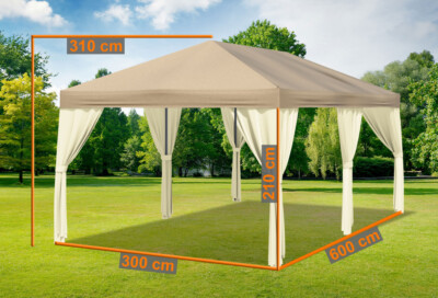 Wow, dieser Pavillon ist ein echter Blickfang für deinen Garten! Mit 3x4 Metern Grundfläche und ner Firsthöhe von 3,10m hast du richtig viel Platz. Bis zu 24 Personen finden hier stehend Platz - perfekt für Gartenpartys, Grillfeste oder Familienfeiern!