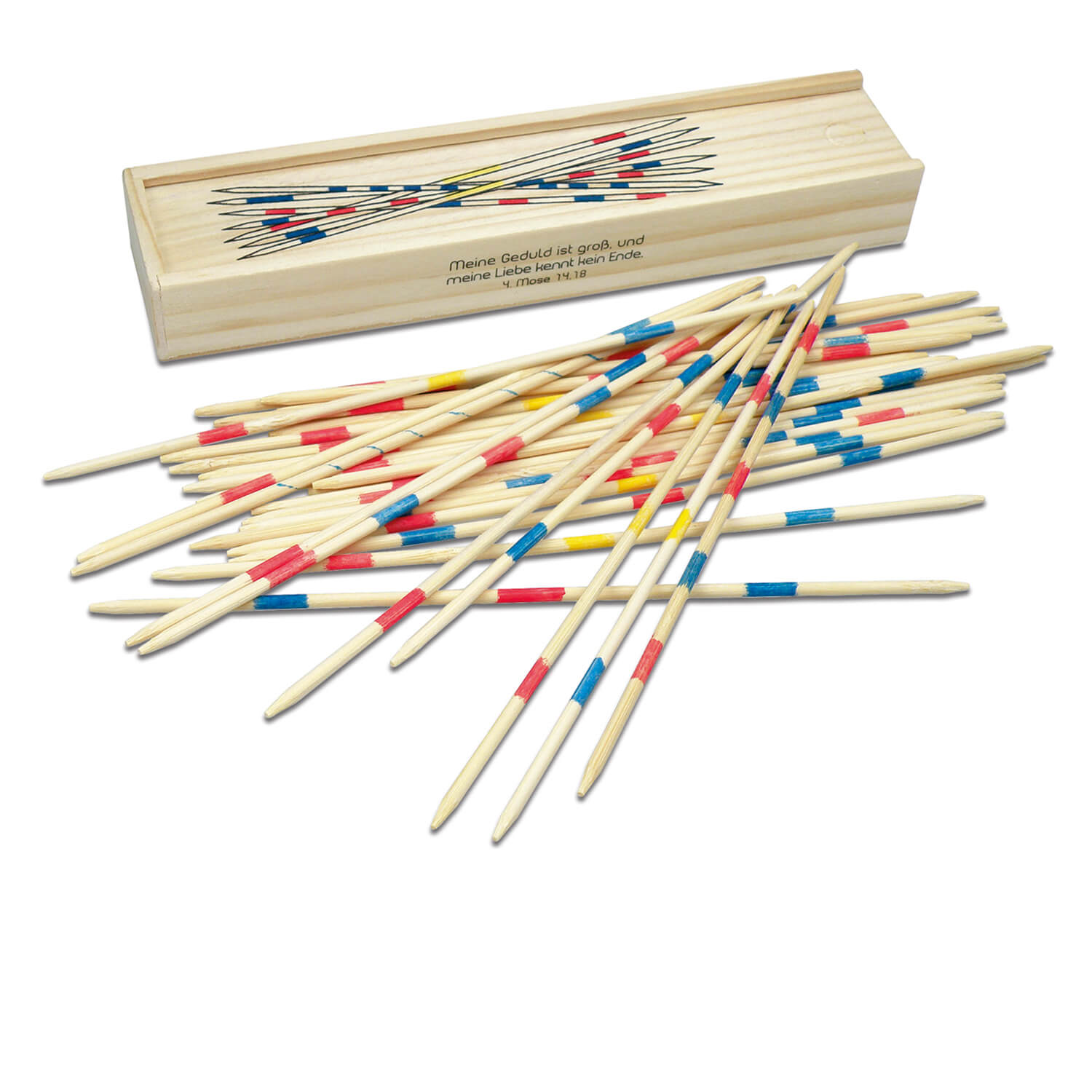Der zeitlose Klassiker für die ganze Familie! Dieses Mikado-Spiel von BLUECHOLON enthält 41 bunt lackierte Holzstäbchen, each 19cm lang. Verpackt in einer schicken Holzbox mit Schiebedeckel - perfekt für unterwegs oder zu Hause. Das Spiel fördert Geschicklichkeit, Konzentration und Geduld. Einfach die Stäbchen auf den Tisch werfen und dann nacheinander herausziehen, ohne die anderen zu bewegen. Super für Spieleabende, Kindergeburtstage oder als Reisespiel. Für Kinder ab 3 Jahren geeignet (unter Aufsicht). Ein Spiel, das Generationen verbindet und nie langweilig wird!