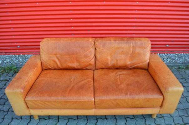 Dieses Miliboo Ledersofa 'Sonny' bringt vintage Flair in dein Wohnzimmer! Mit 193 cm Breite bietet es bequem Platz für drei Personen. Das rekonstituierte Rindsleder in Cognac sieht aus, als hätte es schon viele Geschichten erlebt – weich, geschmeidig und mit wunderschöner Patina. Die solide Holzstruktur aus Kiefer und Buche garantiert Stabilität, während die Federn und dicken Sitzkissen für himmlischen Sitzkomfort sorgen. Die schwarzen Metallfüße unterstreichen den industrialen Look. Perfekt für Vintage-Liebhaber oder Loft-Einrichtungen. Das Sofa kommt fast montiert – nur die Füße musst du noch anbringen. Stilvoll, gemütlich und absolut einzigartig. Ein Sofa mit Charakter!