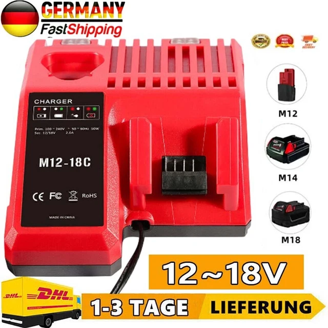 LabTEC Ersatz-Ladegerät Für Milwaukee M12 Akkus - 10.8V-12V Schnellladegerät