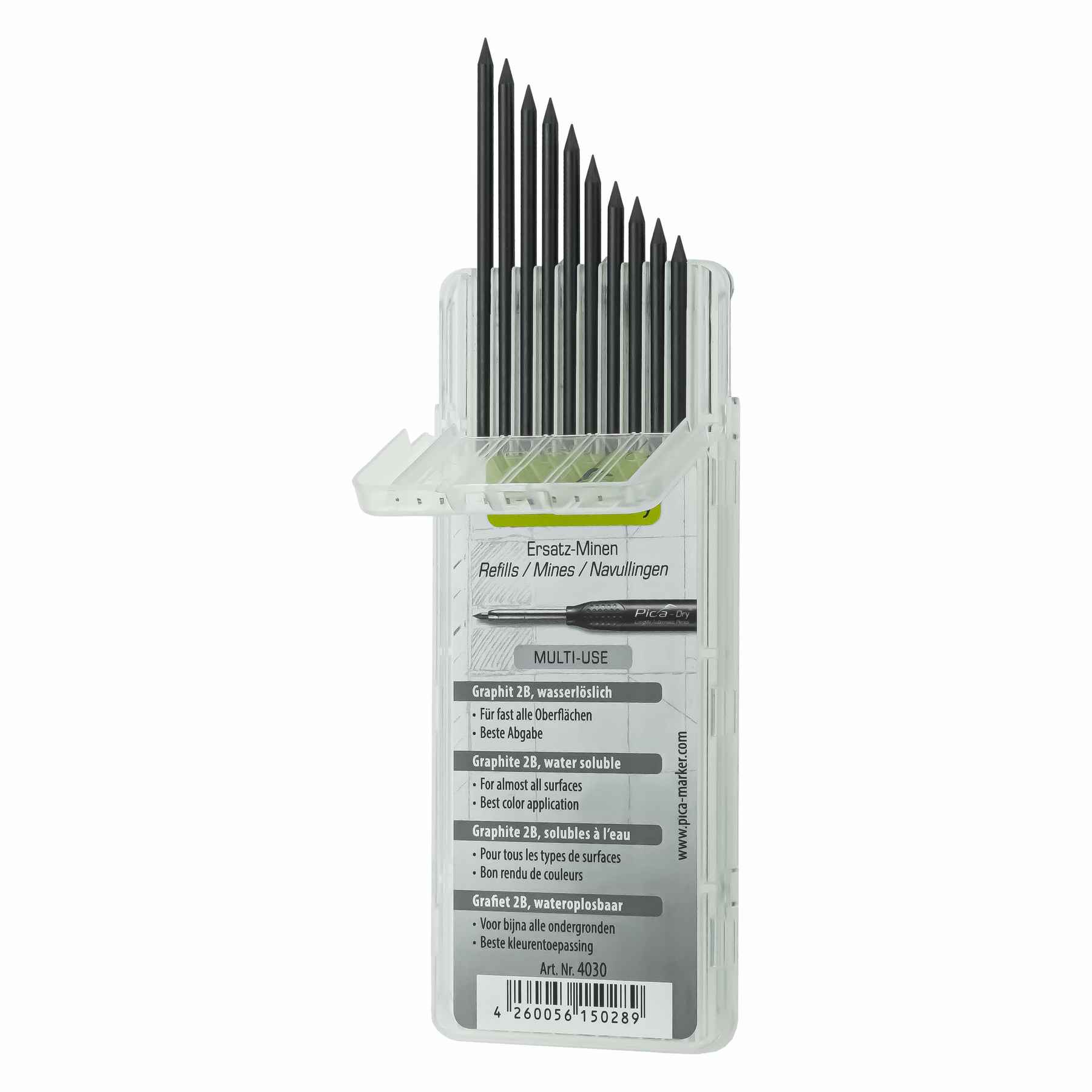 Professionelle Minen für anspruchsvolle Arbeiten! Diese Pica 6055 Big Dry Minen im Härtegrad 10H sind speziell für trockenes, raues Mauerwerk entwickelt. Mit 150mm Länge und 2x5mm Querschnitt bieten sie maximale Stabilität und Langlebigkeit. Die rechteckige Form ermöglicht präzise Linienführung und ist ideal für Markierungen auf rauen Oberflächen. Ob auf Beton, Putz oder Backstein - diese Minen liefern klare, beständige Markierungen. Die hohe Bruchfestigkeit sorgt für zuverlässige Performance auch bei starkem Druck. Perfekt für Handwerker, Bauzeichner und alle, die Wert auf qualitativ hochwertige Markierungen legen. Einfach in den Pica-Bleistift einsetzen und von der hervorragenden Qualität überzeugt sein. Für alle, die das Beste für ihre Arbeit wollen!