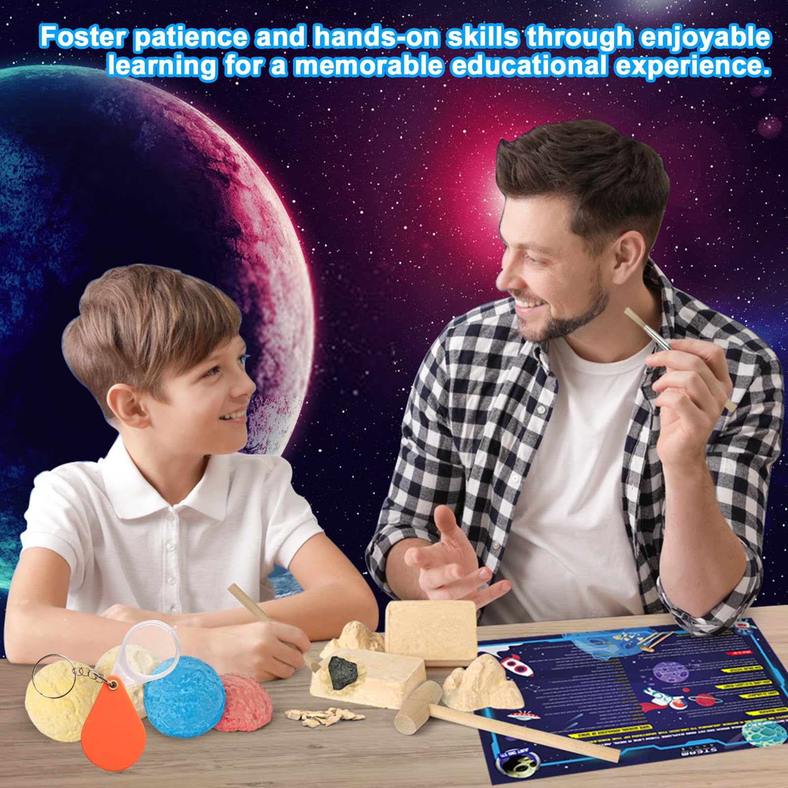 Hey, kleine Entdecker! Mit diesem coolen Vulkan-Ausgrabungsset kannst du wie ein echter Geologe 12 verschiedene echte Mineralien ausgraben. Enthalten sind spannende Steine wie glänzender Pyrit (auch Katzengold genannt) und wunderschöner violetter Amethyst. Im Set findest du alles, was du brauchst: einen sicheren Holzhammer, einen kindgerechten Meißel, einen Staubpinsel und eine Lupe mit 3-facher Vergrößerung. In der stabilen Sammelbox mit Fächern kannst du deine Funde später super aufbewahren und präsentieren. Das coole 24-seitige Farbbuch erklärt dir alles über die Steine und ihre Eigenschaften. Einfach den Vulkan-Gipsblock mit Wasser besprühen, dann mit Hammer und Meißel vorsichtig die Schätze freilegen, mit dem Pinsel säubern und mit der Lupe genau untersuchen. Das Set ist für Kinder von 6 bis 14 Jahren geeignet und nach EN71 zertifiziert – also vollkommen sicher. Ein tolles Geschenk für Geburtstage oder Weihnachten, das nicht nur Spaß macht, sondern auch ganz viel über die Erde lehrt!