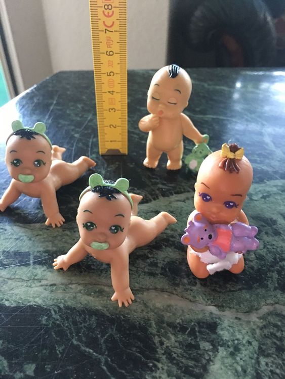 Oh wie süß! Diese 4 Mini-Babypuppen sind einfach nur zum Knuddeln! Mit ihren 4 Zoll (ca. 10,5 cm) Größe passen sie perfekt in kleine Kinderhände und sind ideal für unterwegs. Jede Puppe hat diesen niedlichen schlafenden Gesichtsausdruck und bewegliche Gelenke - da können die Kleinen sie in alle möglichen Positionen bringen! Die Puppen kommen schon in ihren eigenen süßen Outfits daher, die weich und abnehmbar sind. So lernen die Kinder spielerisch An- und Ausziehen. Hergestellt aus PVC, Stoff und Vinyl fühlen sich die Puppen richtig lebensecht an. Perfekt für Mädchen ab 3 Jahren, um ihre motorischen Fähigkeiten zu entwickeln und in Rollenspiele einzutauchen. Achtung: Wegen der kleinen Teile nicht für Kinder unter 3 Jahren geeignet! Im Set sind 4 verschiedene Puppen in einer 22x9,3 cm Box - ein super Geschenk für Geburtstage oder einfach so. Die detaillierten Gesichtszüge und die qualitativ gute Verarbeitung machen diese Puppen zu echten Lieblingen!