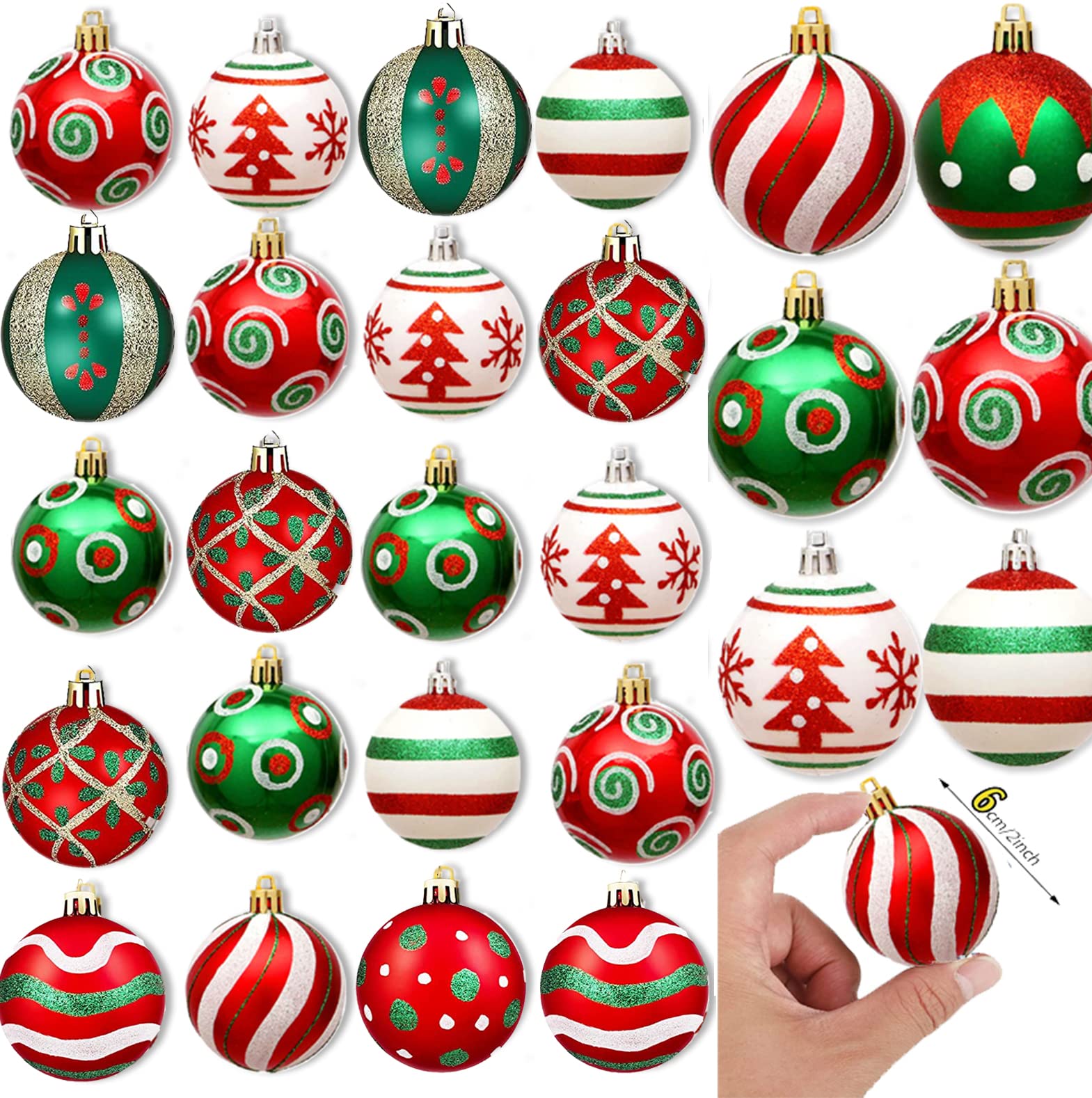 Weihnachtliche Stimmung garantiert! Dieses bezaubernde Set mit 30 Mini-Weihnachtskugeln in rot und gold macht deinen Christbaum zum absoluten Hingucker.\\n\\nJede Kugel misst 3 cm im Durchmesser - perfekt für große und kleine Weihnachtsbäume. Aus hochwertigem Kunststoff gefertigt, sind sie bruchsicher und langlebig. Selbst wenn mal eine runterfällt, geht sie nicht kaputt!\\n\\nDas Set enthält 7 verschiedene Stile: rote Spirale, roter Spiegel, rot glatt, rot matt, roter Glitzer, gold glatt und gold Glitzer. Plus einen goldenen Stern für die Baumspitze - alles dabei für eine perfekte Weihnachtsdekoration!\\n\\nDie praktischen Aufhängeschnüre sind bereits angebracht. Einfach aufhängen und sich an der festlichen Atmosphäre erfreuen. Ideal für Zuhause, Büro, Restaurant oder Einkaufszentrum.\\n\\n• 30 Mini-Weihnachtskugeln\\n• Durchmesser: 3 cm\\n• Rot und gold Farbkombination\\n• Aus bruchsicherem Kunststoff\\n• Mit Baumspitzen-Stern\\n• 7 verschiedene Stile