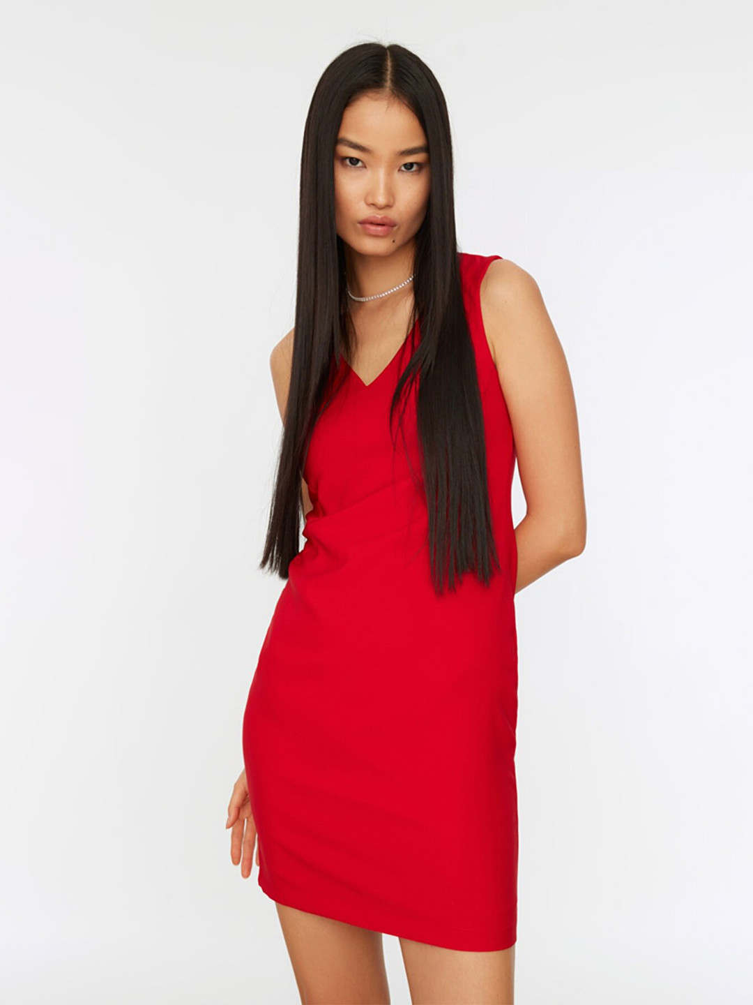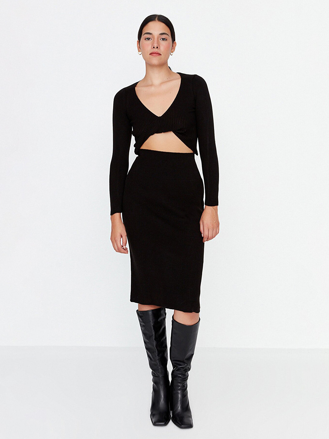 Das perfekte Kleid für jeden Anlass! Das TRENDYOL Bodycon Kleid im lässigen Strick-Look sitzt wie angegossen und betont deine Figur auf die schönste Weise. Mit dem schmeichelhaften V-Ausschnitt und der Mini-Länge bist du immer trendy unterwegs - ob auf einem Date, beim Stadtbummel oder auf der Party.\\n\\nDie Materialmischung aus 63% Polyester, 15% Viskose, 11% Acryl, 10% Baumwolle und 1% Wolle fühlt sich angenehm weich auf der Haut an und passt sich deinem Körper optimal an. Das Plain-Design ohne Muster ist super vielseitig kombinierbar - mit Sneakern für den lässigen Look oder mit Stiefeletten für den ausgehenden Style.\\n\\nTipp: Wenn du zwischen zwei Größen liegst, nimm lieber die größere für mehr Komfort! Das Kleid ist Teil der TRENDYOL Collection, die aktuelle Modetrends in tragbare Outfits übersetzt.\\n\\nEinfach überziehen und du bist ready für den Tag! Kein lästiges Bügeln nötig - das Material fällt einfach schön und knittert kaum. Ein echter Kleiderschrank-Liebling, den du immer wieder anziehen wirst. Zeig deinen persönlichen Style und fühl dich den ganzen Tag über wohl in deiner Haut!