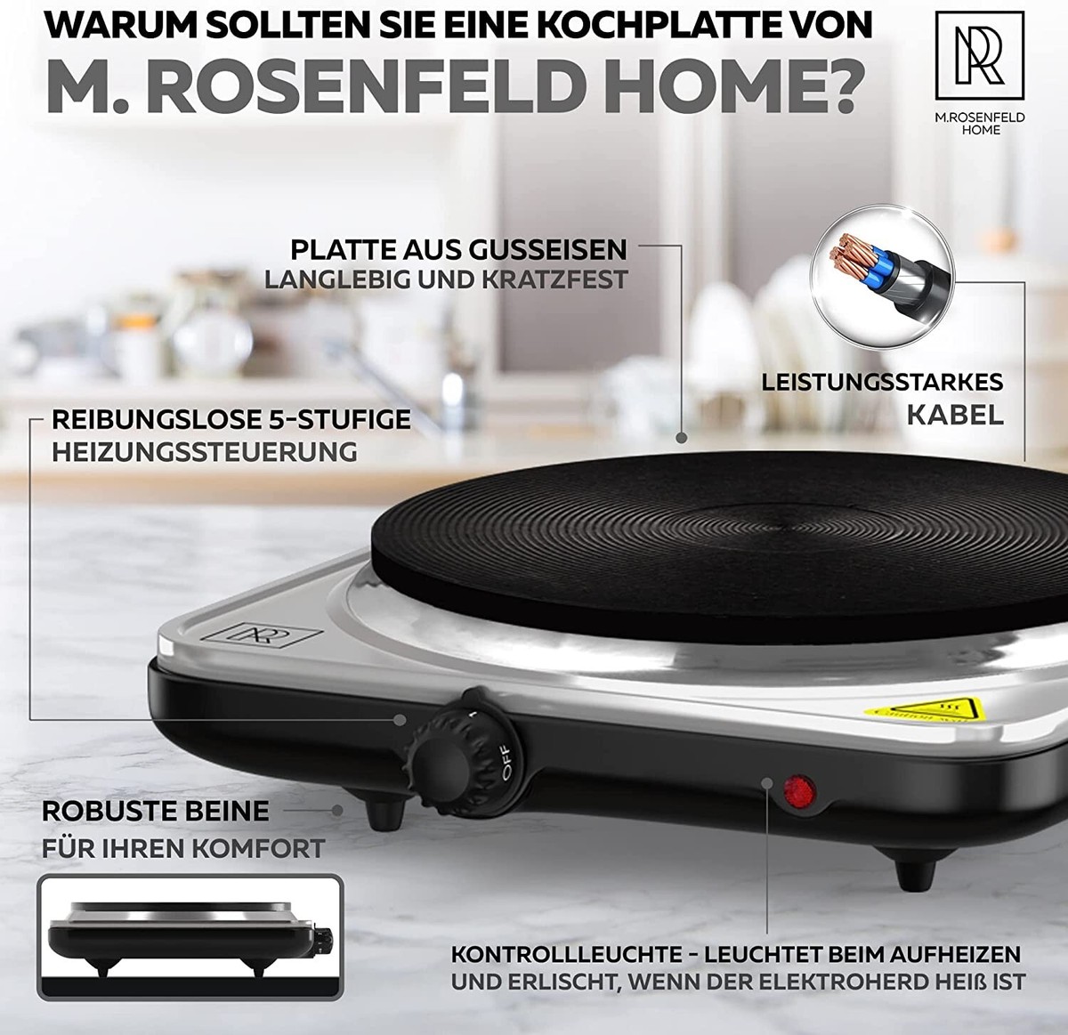 • GOMETY Mini Kochplatte 500W - Elektrische Heizplatte Gusseisen 5 Stufen