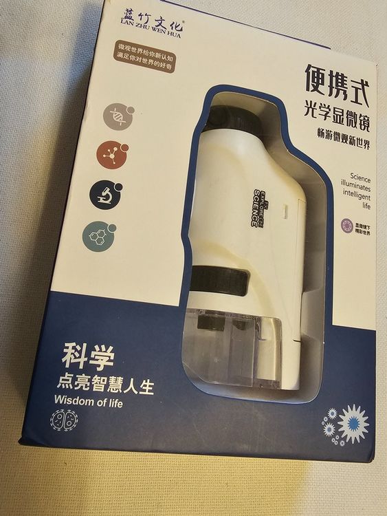 Wow, mit diesem Mini-Mikroskop entdeckst du eine ganz neue Welt! Mit 60- bis 120-facher Vergrößerung siehst du Dinge, die mit bloßem Auge unsichtbar sind. Perfekt für neugierige Kinder ab 6 Jahren. Das coole Teil ist nur 4,5x3x9,6 cm klein - passt in jede Tasche! Mit LED-Beleuchtung siehst du alles kristallklar. Einfach Batterie rein (Nummer 7, nicht im Lieferumfang), Objekt untersuchen und staunen! Aus robustem ABS-Kunststoff gebaut - hält auch mal was aus. Perfekt für den Biologieunterricht, Naturerkundungen oder einfach so zum Experimentieren. Damit wird Wissenschaft zum Abenteuer! Dein Kind wird begeistert sein, wenn es Insekten, Pflanzen oder sogar die eigene Haut ganz nah erforschen kann. Ein super Geschenk für kleine Entdecker!