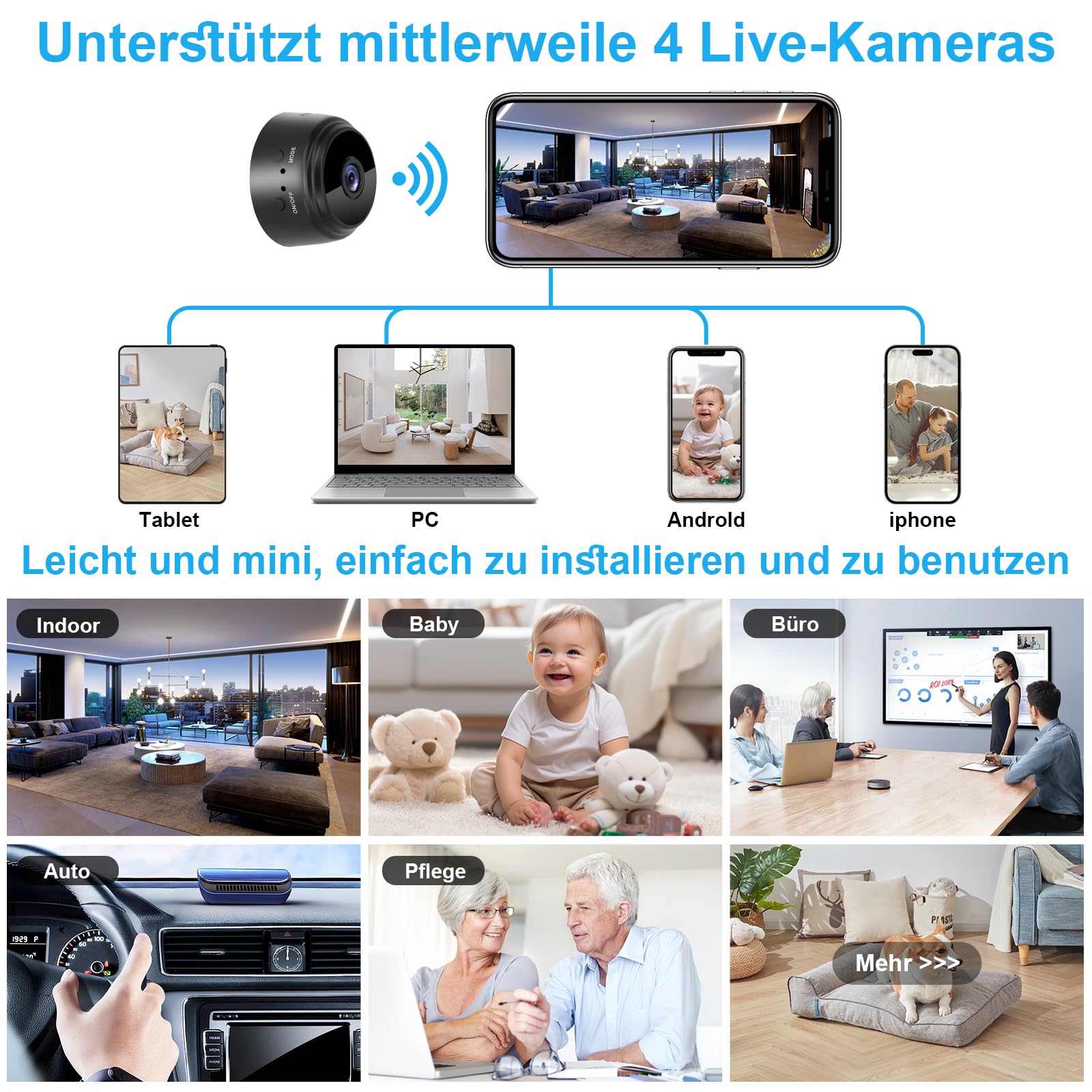 • Mini Überwachungskamera 1080P Full HD Mit WLAN - Kleine WiFi Kamera Mit Akku & Bewegungsmelder