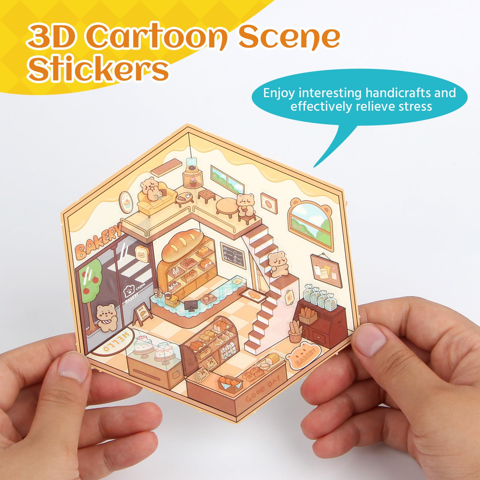 Tauche ein in eine winzige, wunderbare Welt! Mit diesen niedlichen 3D-Stickern baust du dir deine eigene Miniatur-Stadt zusammen. Das Set hat 20 verschiedene Themen-Szenen - von der süßen Bäckerei über den gemütlichen Blumenladen bis zur geheimnisvollen Kürbis-Hütte. Alles super detailreich und in knalligen Farben! Die Sticker sind aus hochwertigem, geruchlosem Papier und PET. Sie lassen sich leicht abziehen und dank der mitgelieferten Pinzette präzise platzieren. Das Beste: Du kannst sie immer wieder verwenden und neu arrangieren! Super zum Entspannen und Abschalten - einfach mal die Seele baumeln lassen und kreativ werden. Dekoriere damit dein Tagebuch, die Handyhülle oder mach ein ganzes Kunstwerk daraus. Perfekt für Kinder ab 3 Jahren und Erwachsene, die mal wieder was mit den Händen machen wollen. Einfach ausprobieren und staunen, wie die Zeit vergeht!