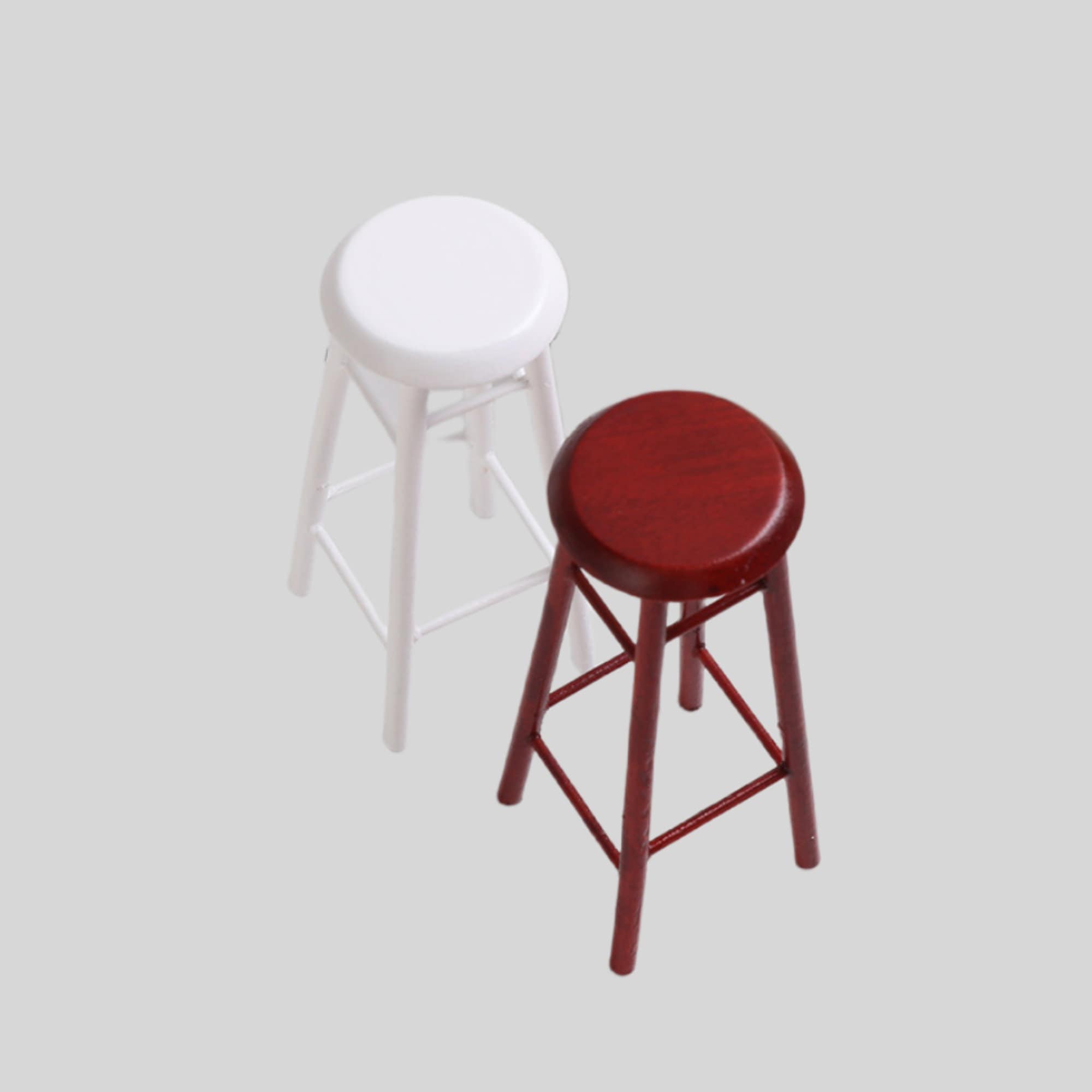 So niedlich! Diese zwei Miniatur-Barhocker im Vintage-Design sind der absolute Hingucker für jedes Puppenhaus. Mit nur 7,5 cm Höhe passen sie perfekt in deine Miniaturszene und verleihen ihr sofort gemütliches Flair. Aus robustem Holz gefertigt, halten die Hocker auch bei häufigem Spielen problemlos durch. Ob für eine urige Kneipe, ein modernes Loft oder eine gemütliche Wohnküche - die Hocker passen zu jedem Einrichtungsstil. Super als DIY-Projekt: Du kannst sie nach Belieben bemalen oder lasieren und so deinem Puppenhaus deinen persönlichen Stempel verleihen. Perfekt für erwachsene Sammler genauso wie für Kinder, die ihre Puppenwohnung einrichten wollen. Die kompakte Größe macht sie super für Dioramen, Puppenhäuser oder einfach als niedliche Deko auf dem Regal. Hol dir ein Stück Gemütlichkeit im Miniaturformat!