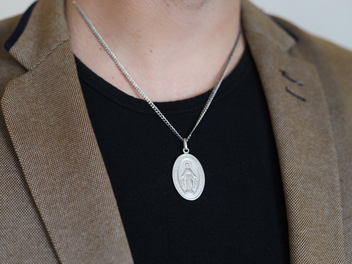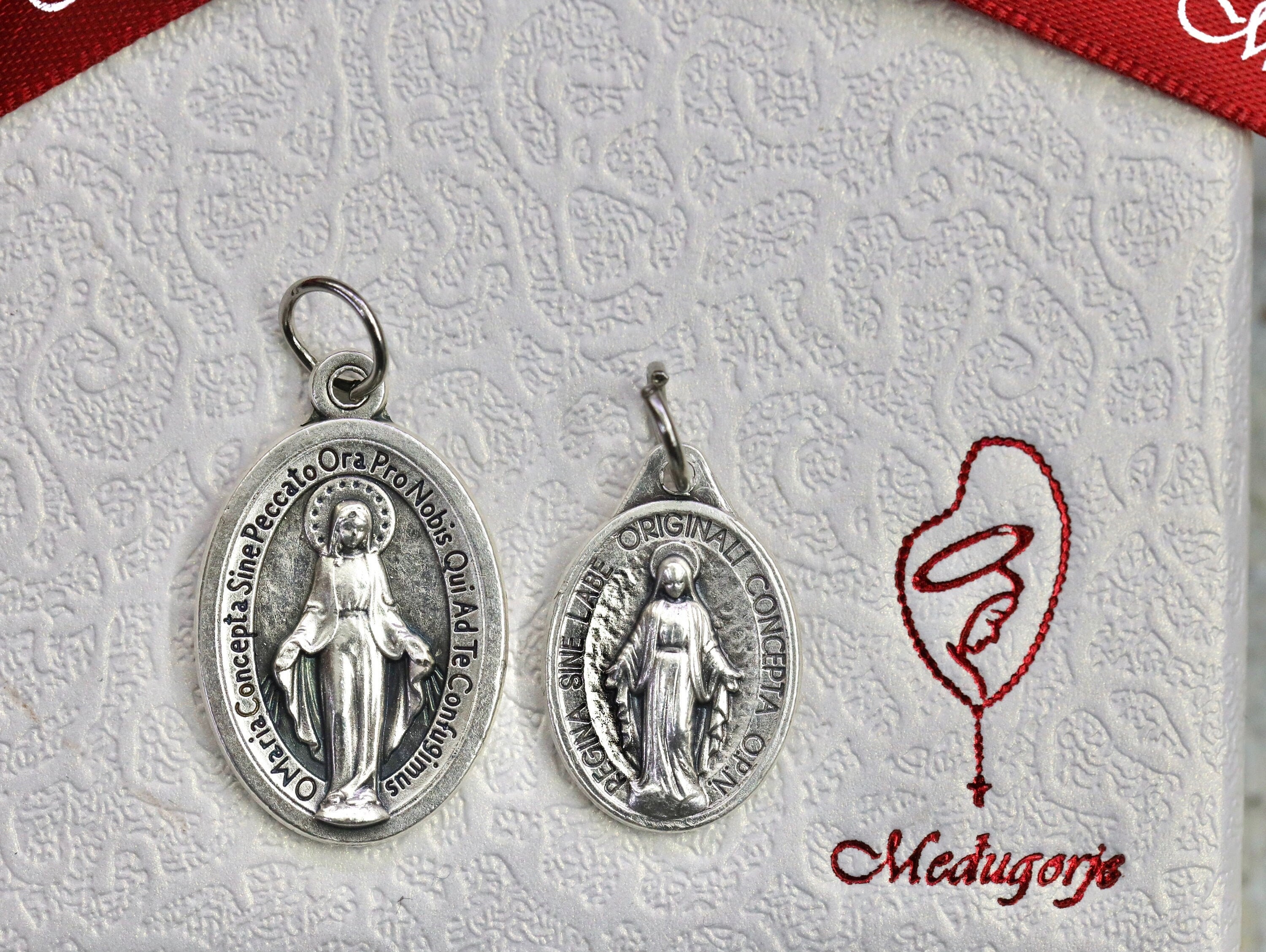 Ein kleines Schmuckstück mit großer Bedeutung! Diese zarte Mini-Medaille der Wundertätigen Jungfrau ist aus hochwertigem 925er Sterlingsilber gefertigt und misst nur 11x9mm - diskret aber dennoch wunderschön. Perfekt für alle, die ihren Glauben immer bei sich tragen möchten. Hypoallergen und nickelfrei, ideal auch für empfindliche Haut. Die Medaille kommt ohne Kette, sodass du sie an deine Lieblingskette hängen oder an einem Armband tragen kannst. Ein wunderbares Geschenk zur Kommunion, Konfirmation, Taufe oder einfach als Zeichen der Zuneigung. Ob für Männer, Frauen oder Jugendliche - dieses zeitlose Stück passt zu jedem Outfit und verleiht eine persönliche Note. Die feine Gravur ist detailreich ausgearbeitet und macht diese Medaille zu einem wertvollen Begleiter für jeden Tag. In einer hübschen Verpackung geliefert, perfekt zum Verschenken. Ein Stück, das nicht nur schön aussieht, sondern auch Trost und Kraft spenden kann. Ein Must-Have für jeden religiösen Schmuck-Liebhaber!