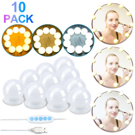 Professionelles Make-up-Lighting für Zuhause! Diese Spiegelleuchte im Hollywood-Stil mit 10 dimmbaren LEDs bringt perfektes Licht für dein Styling. Drei Farbmodi (kaltweiß, naturweiß, warmweiß) sorgen für die ideale Beleuchtung in jeder Situation. Einfach per USB anschließen - ob an Steckdose, Powerbank oder PC - und mit beiligendem Klebeband oder Saugnapf am Spiegel befestigen. Kein Bohren nötig! Das Licht ist gleichmäßig, blendfrei und augenschonend. Perfekt fürs tägliche Make-up, für Fotoshootings oder Tutorials. Sieht dazu noch mega-stylisch aus - ob im Badezimmer, Ankleidezimmer oder auf dem Schminktisch. Einfach anschließen, anschalten und strahlen!