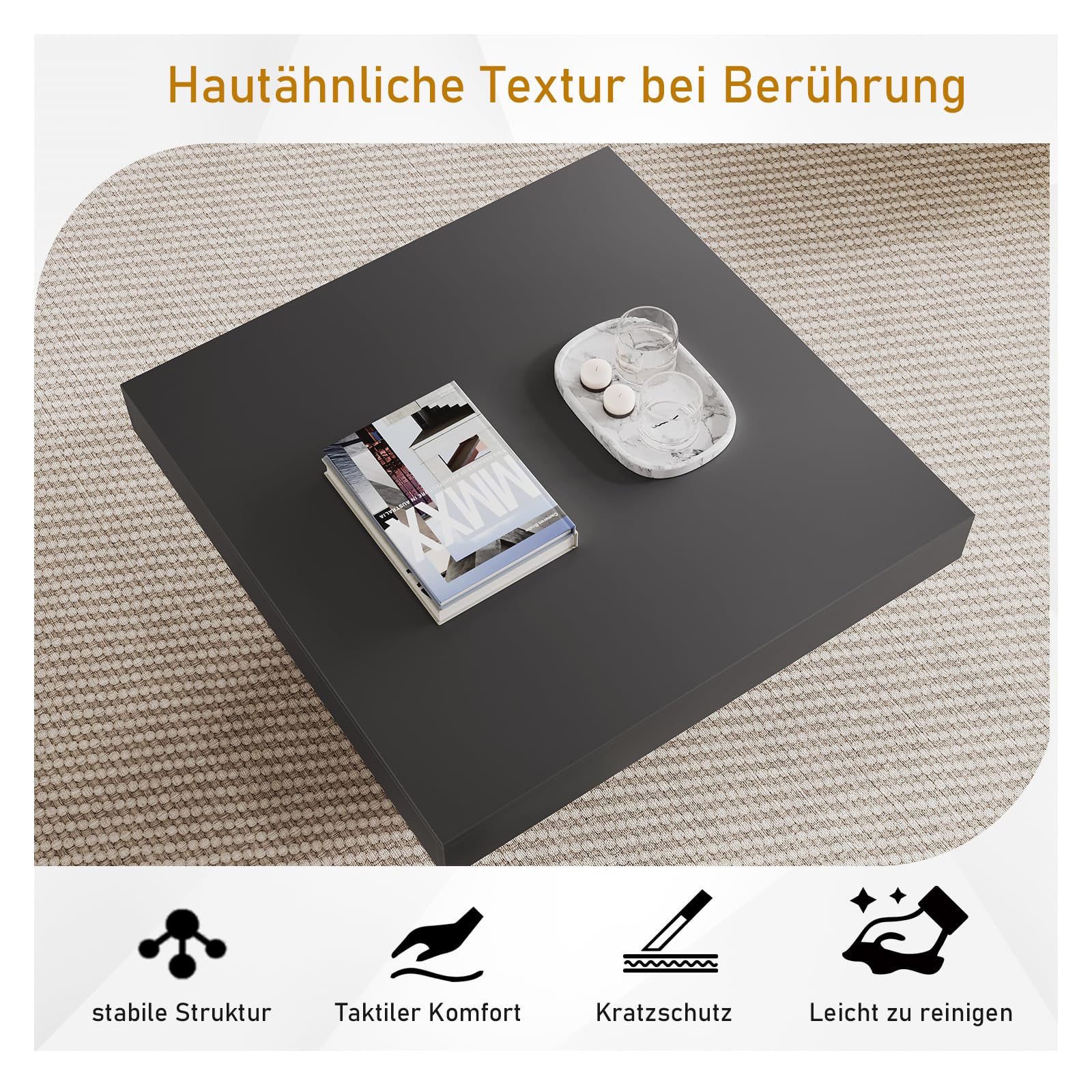 Wow, dieser Couchtisch von KEEPREAPER ist genau das, was dein Wohnzimmer braucht! Maße: 110x50x40 cm - perfekt für die Couch. In schwarz mit coolen Metallfüßen, sieht total modern aus. Die Holzoptik ist täuschend echt und fühlt sich super an. Das Gitter-Relief an den Seiten gibt dem Tisch diesen besonderen Look. Und das Beste: 2 geräumige Schubladen! Da verschwinden Fernbedienungen, Zeitschriften, Handys und alles was rumliegt. Die Schubladen laufen super leise - kein lästiges Geräusche. Aus starker 15mm Spanplatte - robust und langlebig. Montage ist easy, alles dabei. Endlich mehr Ordnung im Wohnzimmer und dazu noch stylisch! Einfach hinstellen und über den neuen Look freuen.