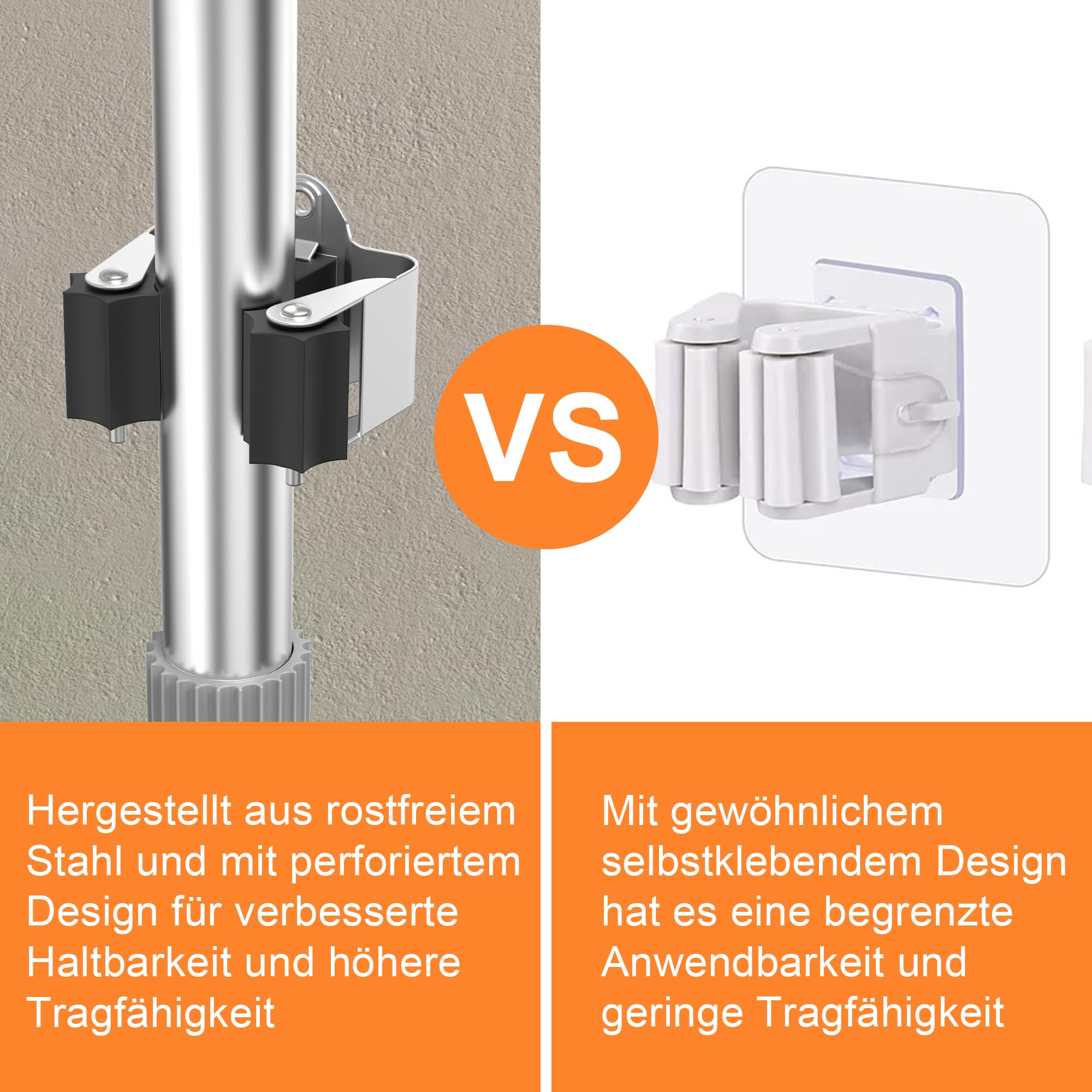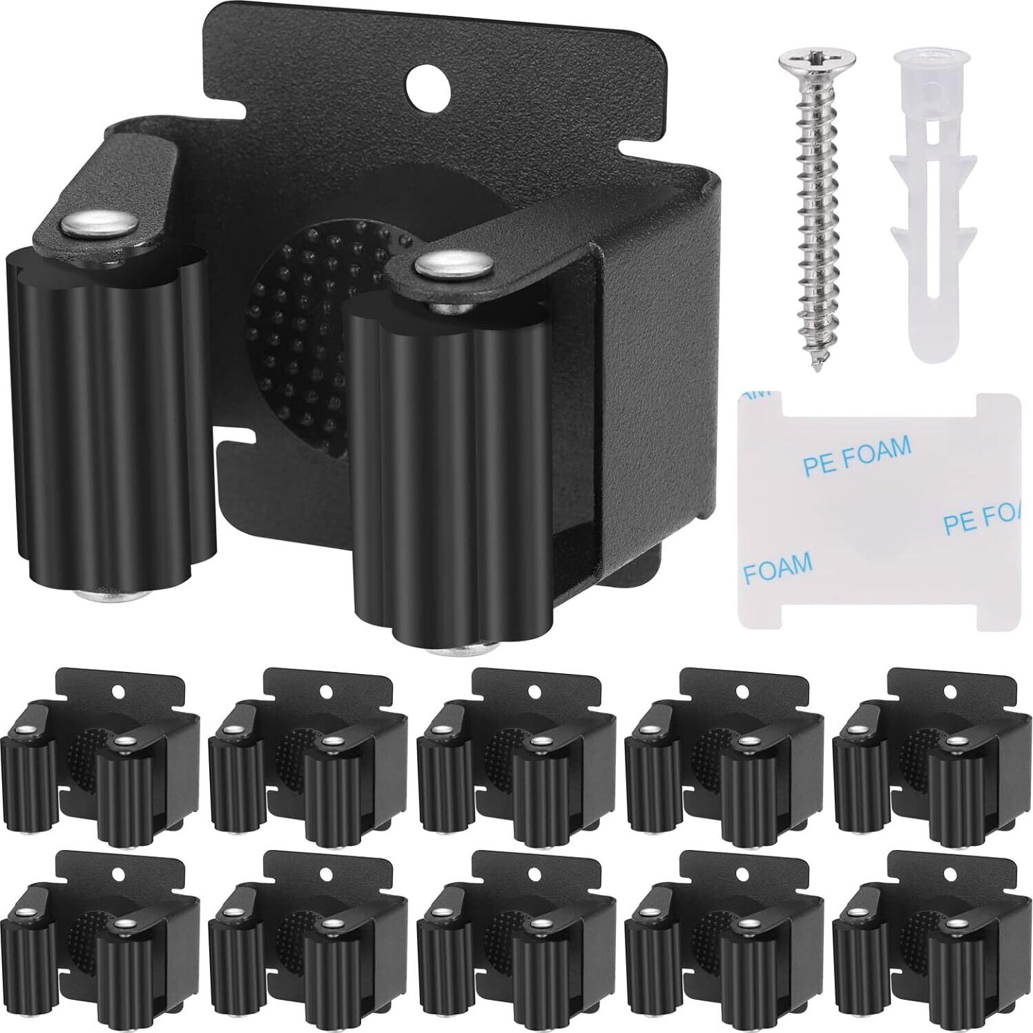 Boah, dieses 12er-Set Gerätehalter bringt endlich Ordnung in deine Garage, Gartenhaus oder Küche! Aus hochwertigem 304 Edelstahl - rostfrei, korrosionsbeständig und mega langlebig! Jeder Halter hat selbsteinstellende Gummirollen, die sich automatisch an die Stieldicke anpassen - passt für Besen, Mopps, Schaufeln, Harken und mehr. Hält bis zu 5 kg pro Halter - das ist richtig stabil! Mit komplettem Montage-Zubehör: 24 Schrauben, 24 Dübel, 24 Unterlegscheiben und 24 Endkappen - alles dabei! Einfache Installation: Position markieren, Löcher bohren, Dübel rein, Halter anschrauben - fertig! Das schwarze Finish sieht nicht nur gut aus, sondern ist auch pflegeleicht. Spart mega Platz, weil alle Geräte ordentlich an der Wand hängen - kein Chaos mehr auf dem Boden! Perfekt für Garage, Schuppen, Keller, Küche oder Bad. Der einhändig bedienbare Schiebemechanismus macht das Reinigen und Aufräumen super einfach. Einfach die beste Lösung für alle, die ihre Werkzeuge und Putzutensilien ordentlich verstauen wollen!