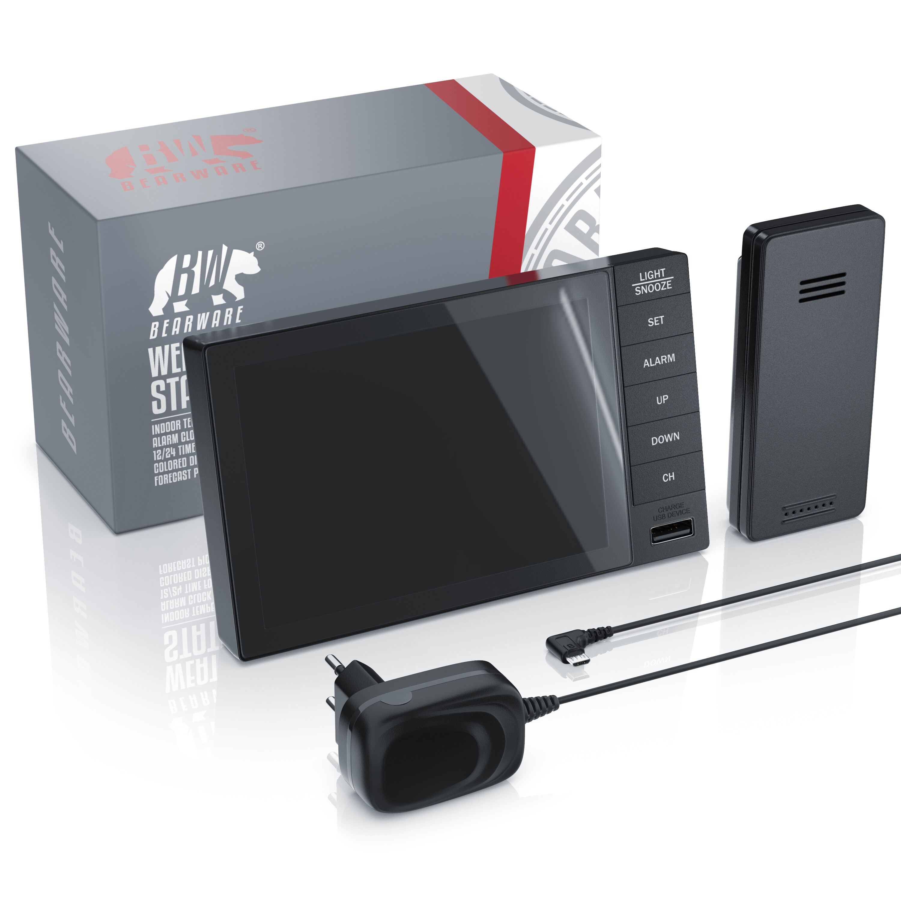 Immer bestens über das Wetter informiert! Diese professionelle Wetterstation mit 3 Außensensoren liefert dir alle wichtigen Daten auf einen Blick. Das große Farbdisplay zeigt Innen-/Außentemperatur, Luftfeuchtigkeit, Luftdruck und 7-Tage-Wettervorhersage. Dank DCF-Funk immer die genaue Zeit mit automatischer Zeitumstellung. Die IPX4 geschützten Sensoren können flexibel im Garten oder am Balkon platziert werden. Mit Weckfunktion, Trendanzeigen und komfortabler Hintergrundbeleuchtung. Perfekt für alle Wetter-Begeisterten, die genau wissen wollen, was draußen los ist. So planst du deinen Tag immer einen Schritt voraus!