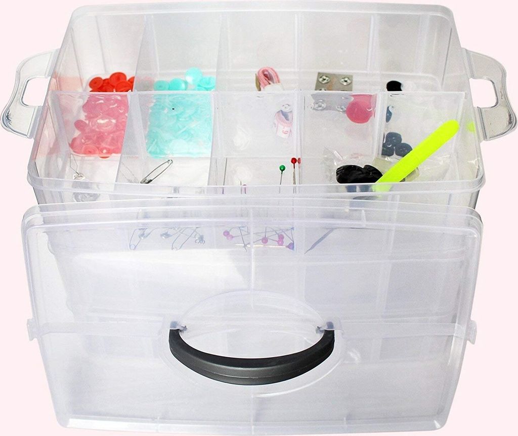 Endlich Ordnung im Chaos! Die Kurtzy Sortierbox mit 30 Fächern ist perfekt, um all deine Kleinteile übersichtlich zu verstauen. Ob Schrauben, Perlen, Nähzubehör oder Spielzeug – hier findet alles seinen Platz. Die Box besteht aus drei stapelbaren Teilen, die du mit einem Schnappverschluss einfach zusammensetzen kannst. Jedes Fach lässt sich individuell einteilen, von einem großen Fach bis zu mehreren kleinen – total flexibel! Das Material ist durchsichtig, du siehst sofort, was wo liegt. Mit dem praktischen Griff auf dem Deckel kannst du die Box leicht transportieren, und da sie aus leichtem Kunststoff ist, macht das auch kein Gewicht. Maße: 24,5 x 16,5 x 18,5 cm (komplett aufgebaut). Super für Bastler, Heimwerker oder alle, die ihr Zubehör sortiert haben wollen. Einfach die Trennwände nach Bedarf einsetzen, und schon hast du dein persönliches Sortiersystem. Kein Suchen mehr, kein Durcheinander – einfach aufklappen und sofort den Überblick behalten. Ein echter Game-Changer für jeden Hobbyraum!