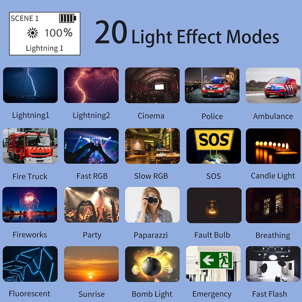 • RGB Fotografie Licht - Videoleuchte Mit 48 FX-Modi, 2500K-8500K Farbtemperatur, 8000mAh Akku