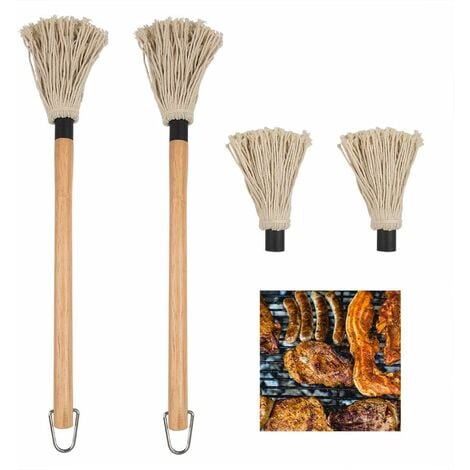 Grillmeister aufgepasst! Dieses Grillmopp-Set macht das Marinieren und Bestreichen zum Kinderspiel. Mit langem Holzgriff, damit deine Hände sicher von der Hitze bleiben. Inklusive 6 Ersatzköpfen aus saugstarker Baumwolle - die halten große Mengen Sauce fest und verteilen sie gleichmäßig auf Steak, Geflügel oder Grillgemüse. Die Fasern bleiben sicher sitzen und fallen nicht aus - kein Ärger mit Haaren im Essen! Einfaches Wechselsystem: Alten Kopf abschrauben, neuen drauf - fertig. Perfekt für BBQ-Sessions, aber auch super als Backpinsel oder zum Einölen von Backwaren. Die Bürsten sind spülmaschinenfest (außer Holzgriff) - easy zu reinigen. Mit großer und kleiner Bürste für verschiedene Aufgaben. Ein Muss für jede Grillparty - damit werden deine Saucen und Marinaden perfekt aufgetragen! Einfach unverzichtbar für alle, die gerne grillen.