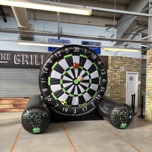 Alter, das Football Dartboard ist der absolute Hammer für den Garten! Stell dir vor: Ein riesiges aufblasbares Dartboard, ganze 3 Meter hoch, und du kickst Fußbälle drauf. Mega Spaß für Partys, Geburtstage oder einfach so im Sommer!