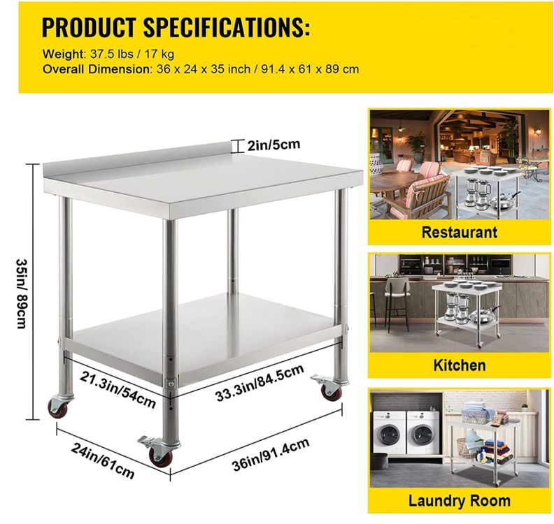 Profis in der Gastronomie aufgepasst! Dieser HENDI Arbeitstisch aus Edelstahl AISI 430 ist ein echter Allrounder für Küche, Bar oder Restaurant. Mit den Maßen 120x60x85 cm bietet er genug Platz zum Arbeiten, und die integrierte Stahldraht-Ablage in 20 cm Höhe gibt zusätzlichen Stauraum. Die Arbeitsplatte ist ohne Aufkantung - du kannst den Tisch also von allen Seiten nutzen. Besonders praktisch: die 4 schwenkbaren Rollen (125 mm), davon zwei mit Bremse. So kannst du den Tisch leicht bewegen und trotzdem standsicher positionieren. Die geschraubte Konstruktion ist extrem stabil und hält einer Belastung von bis zu 70 kg/m² stand. Die wasserdichte, laminierte Platte darunter macht das Ganze noch stabiler und schalldämmend. Perfekt für jeden professionellen Gastronomiebetrieb, aber auch für größere Haushalte geeignet. Einfach aufbauen und sofort einsatzbereit! Ob zum Vorbereiten, Abstellen oder Servieren - dieser Tisch erleichtert dir die Arbeit ungemein.