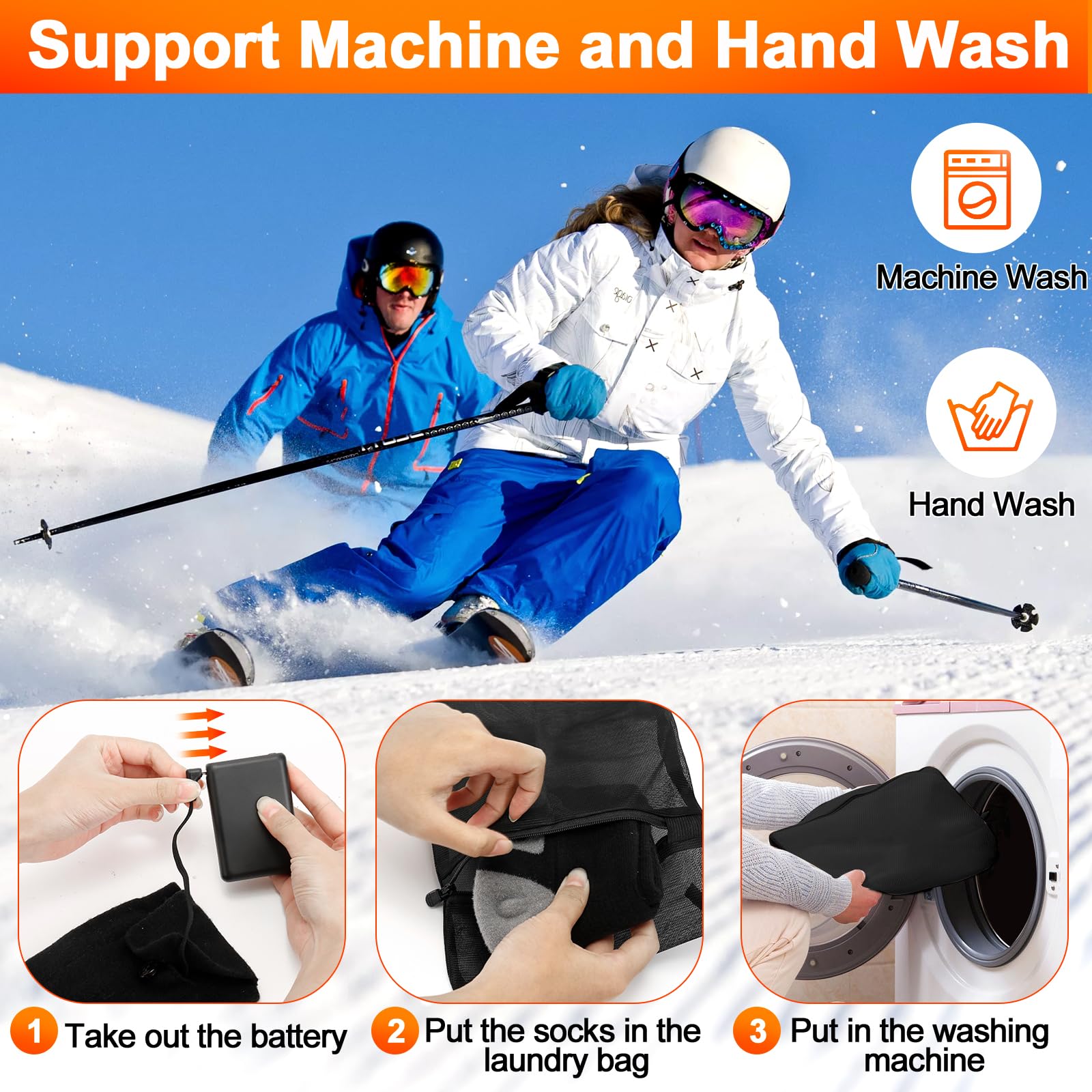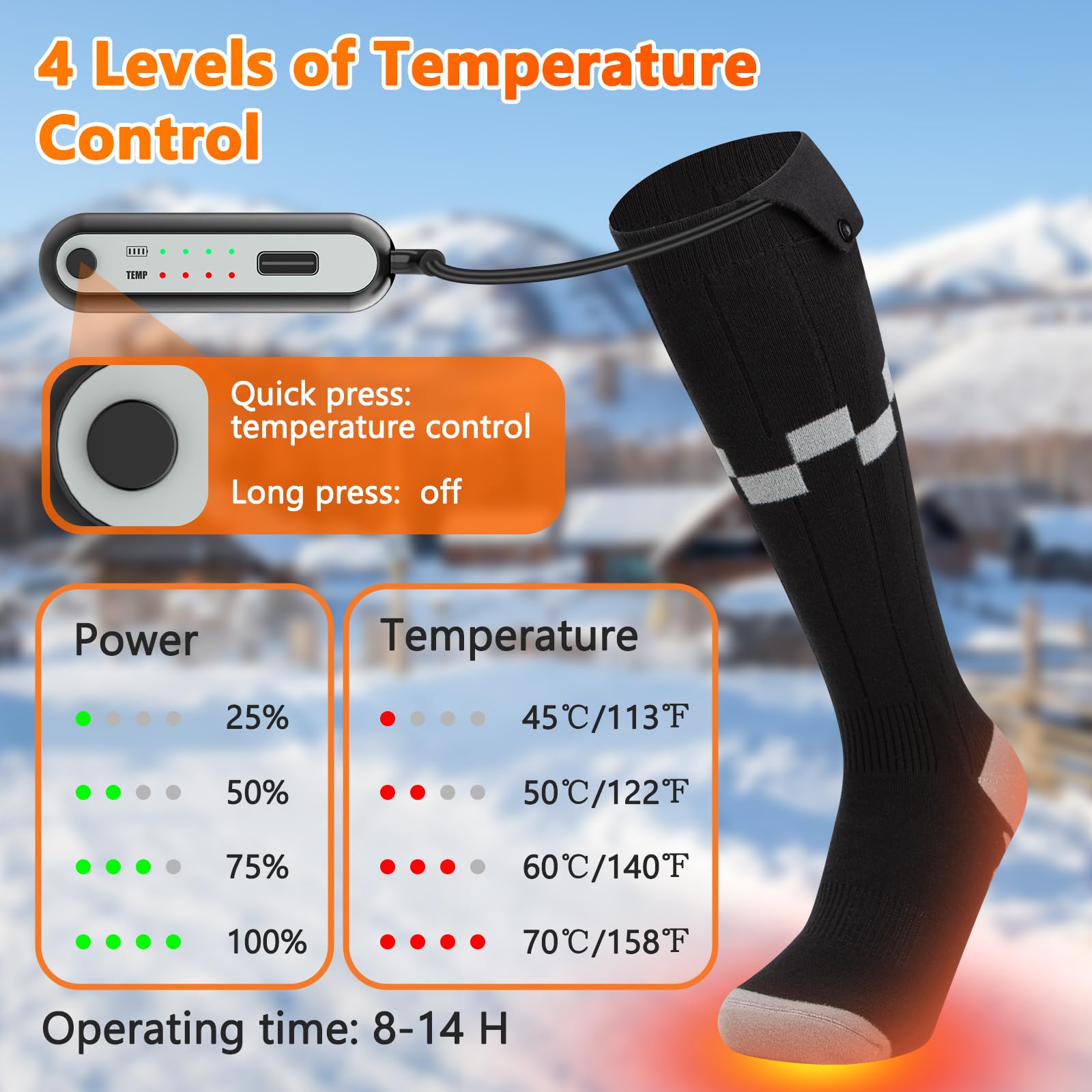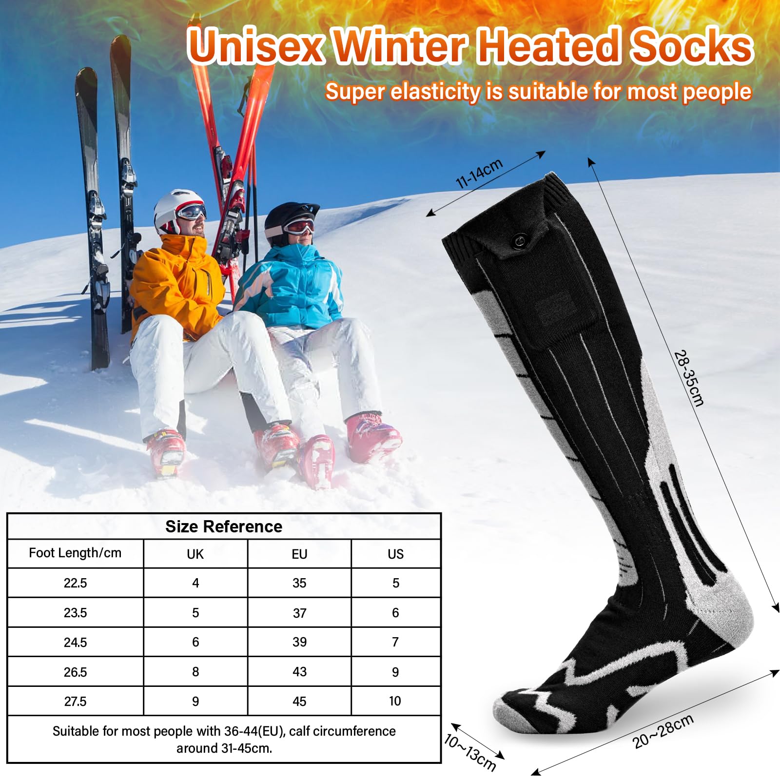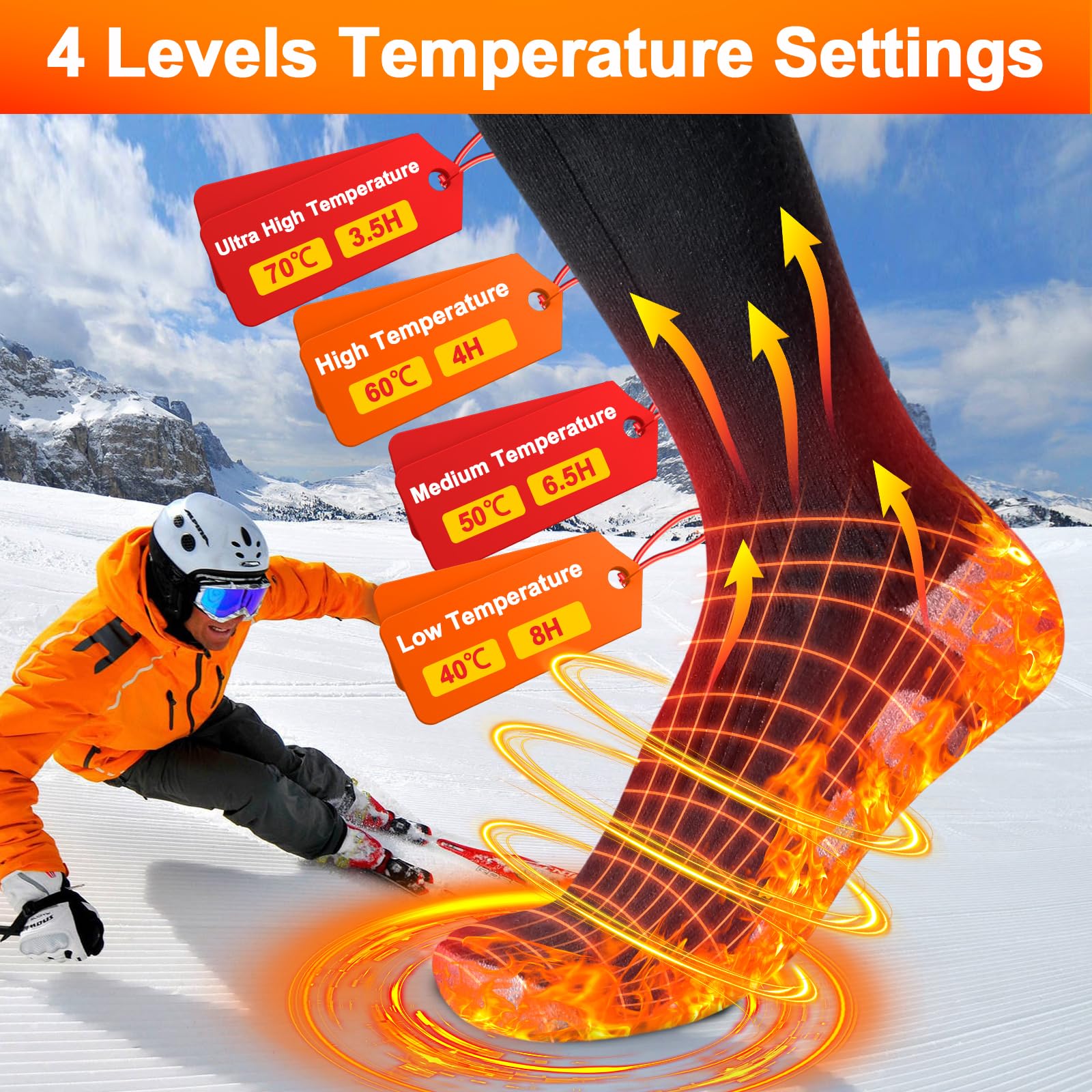 Winter adé - kalte Füße war gestern! Diese beheizbaren Socken mit 5000mAh-Akku sind das perfekte Accessoire für die kalte Jahreszeit. Einfach aufladen, anziehen und auf einer von 4 Temperaturstufen (35-65°C) einstellen. Die Heizfläche bedeckt 80% der Sohle und 30% des Spanns - deine Füße werden gleichmäßig und angenehm warm. Perfekt für Skifahren, Radfahren, Angeln oder einfach nur für gemütliche Spaziergänge. Die superweichen Socken sind atmungsaktiv, waschbar (am besten im Wäschenetz) und trocknen schnell. Mit 2-8 Stunden Laufzeit je nach Heizstufe bist du den ganzen Tag warm unterwegs. Ein super Geschenk für alle, die kalte Füße hassen!